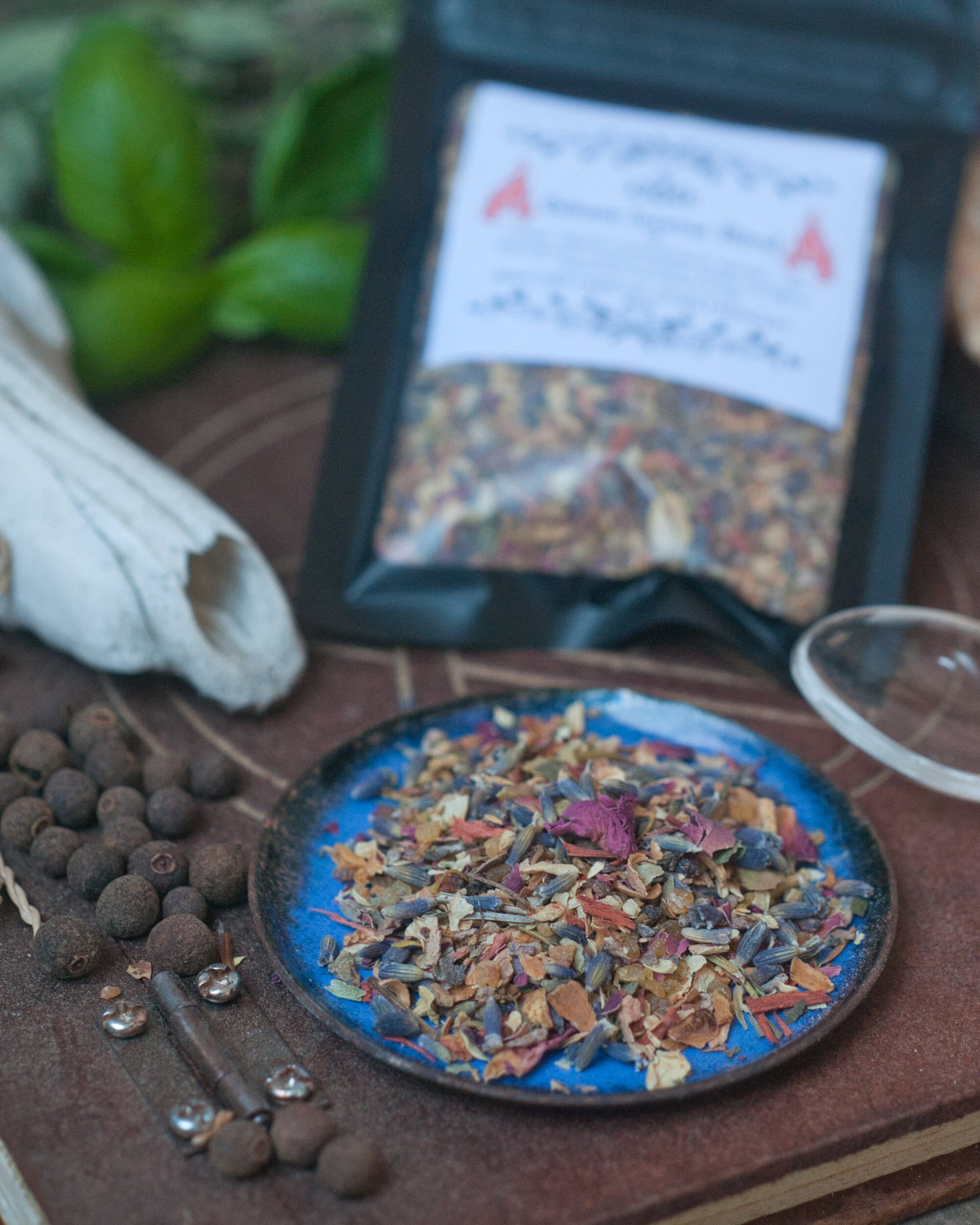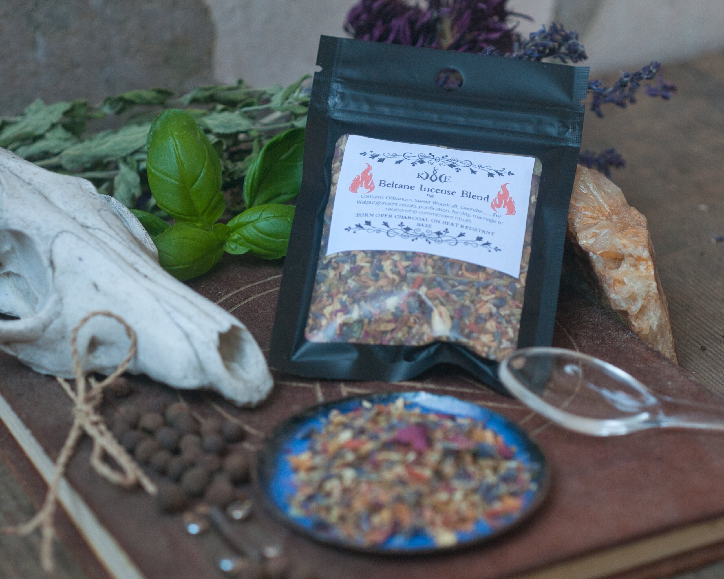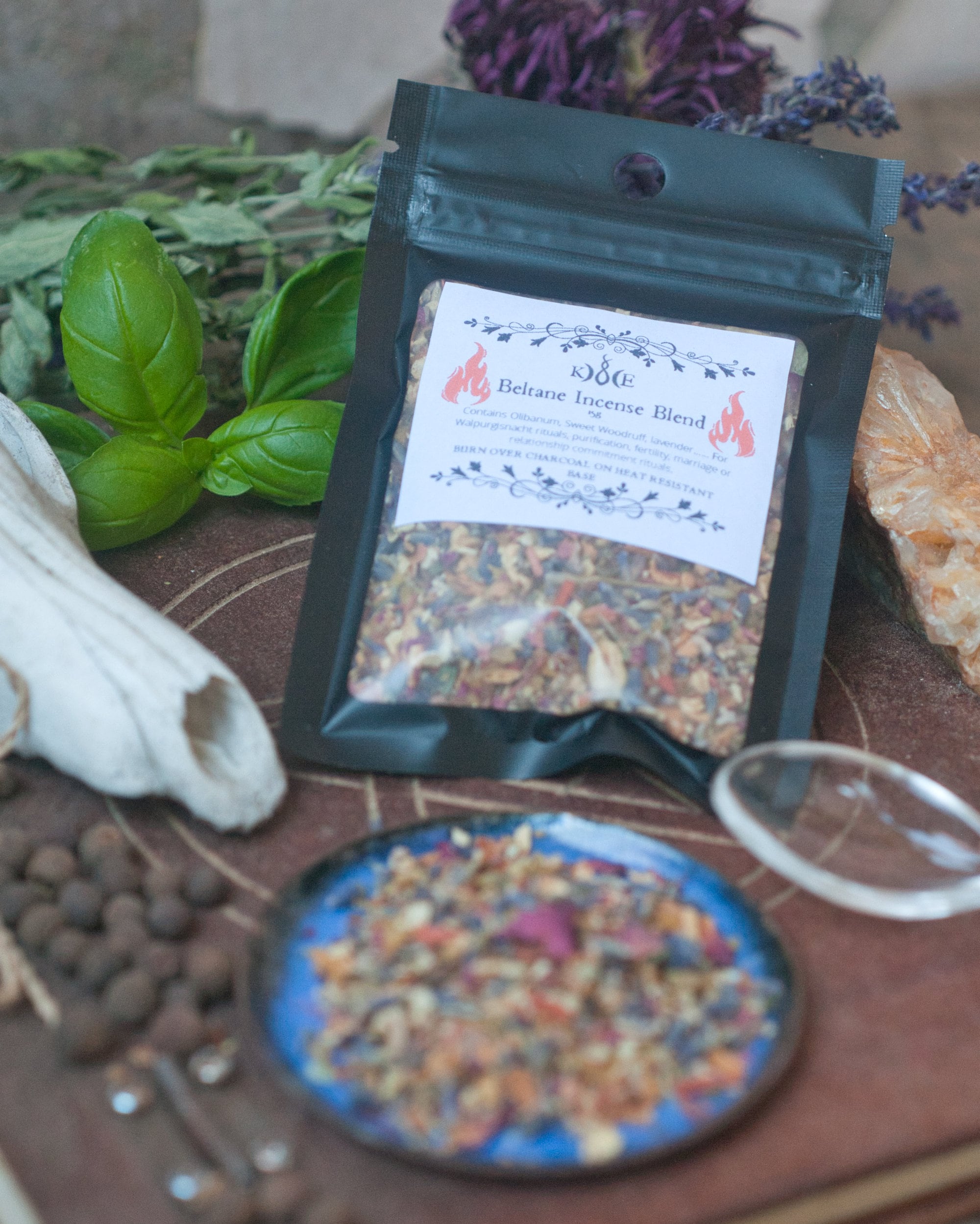 This is a proprietary blend based on traditional recipes and contains Olibanum, Sweet Woodruff, lavender..... For Beltane and Walpurgisnacht rituals, but also can be used all year round for purification, fertility, marriage or relationship commitment rituals.
