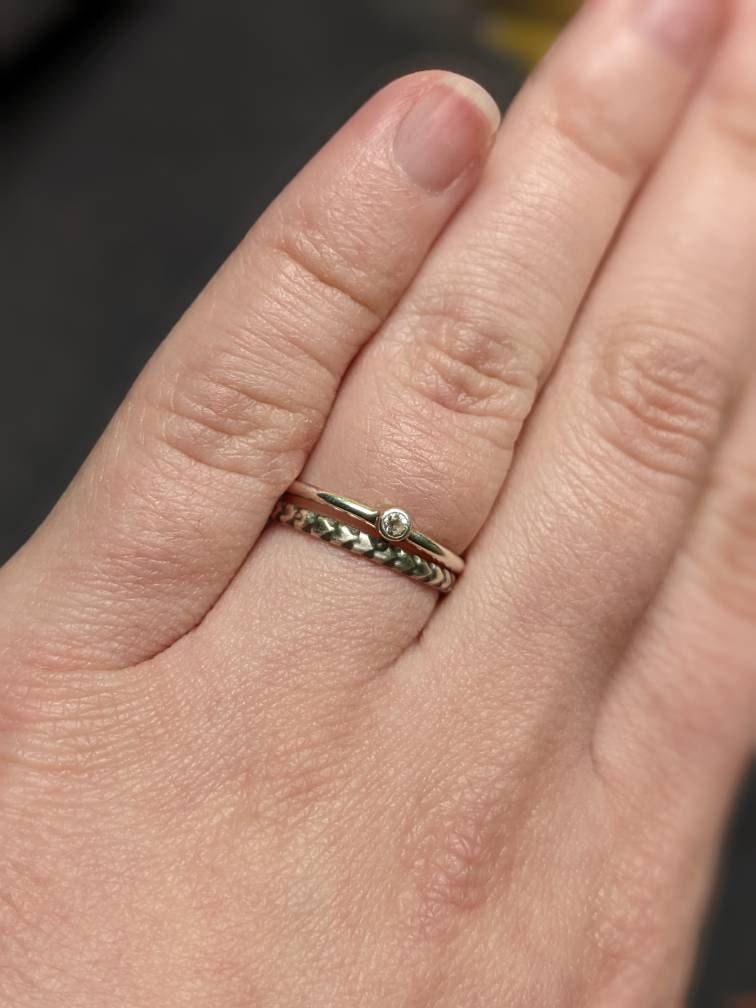 This is my post-wedding ring and I absolutely adore it! It is fine and cute, I can clearly see the mini hearts and it makes me smile everyday when I see it on my finger