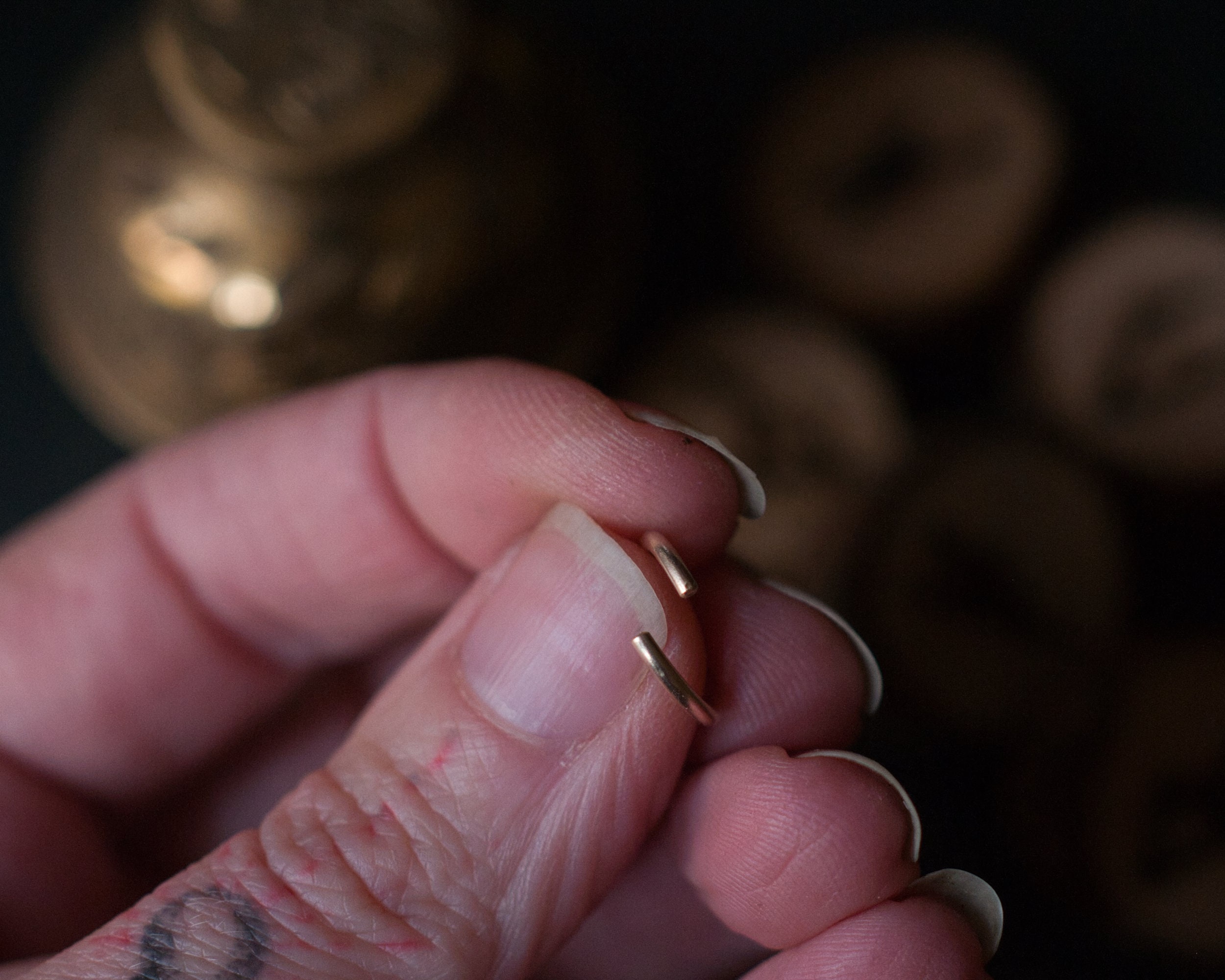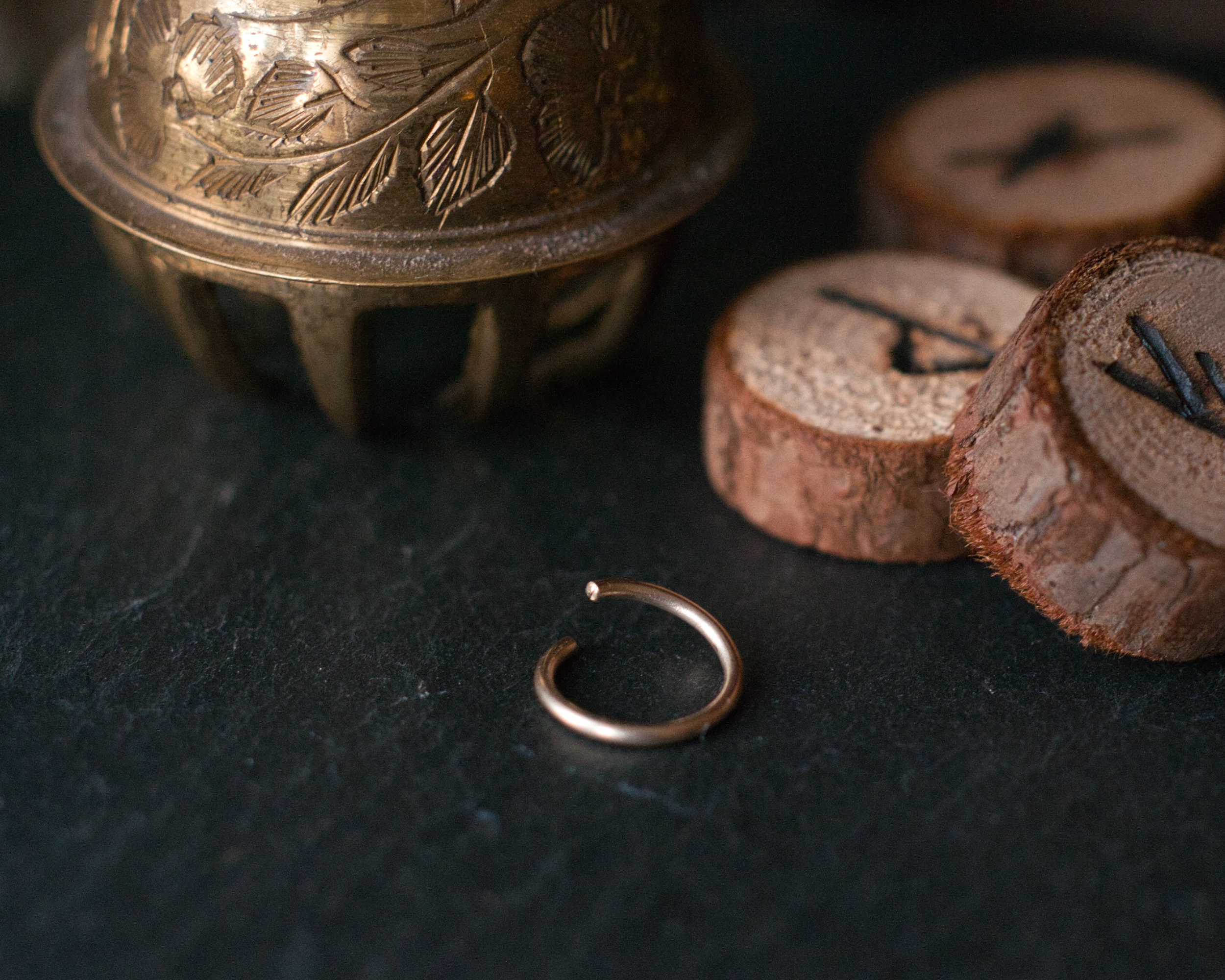 A simple ring of solid 9k gold for the septum, eyebrow, navel, monroe, labret, tragus, helix, or daith. 16 gauge (1.2mm) and with a 9.5mm (3/8") diameter. The gold is 100% recycled.