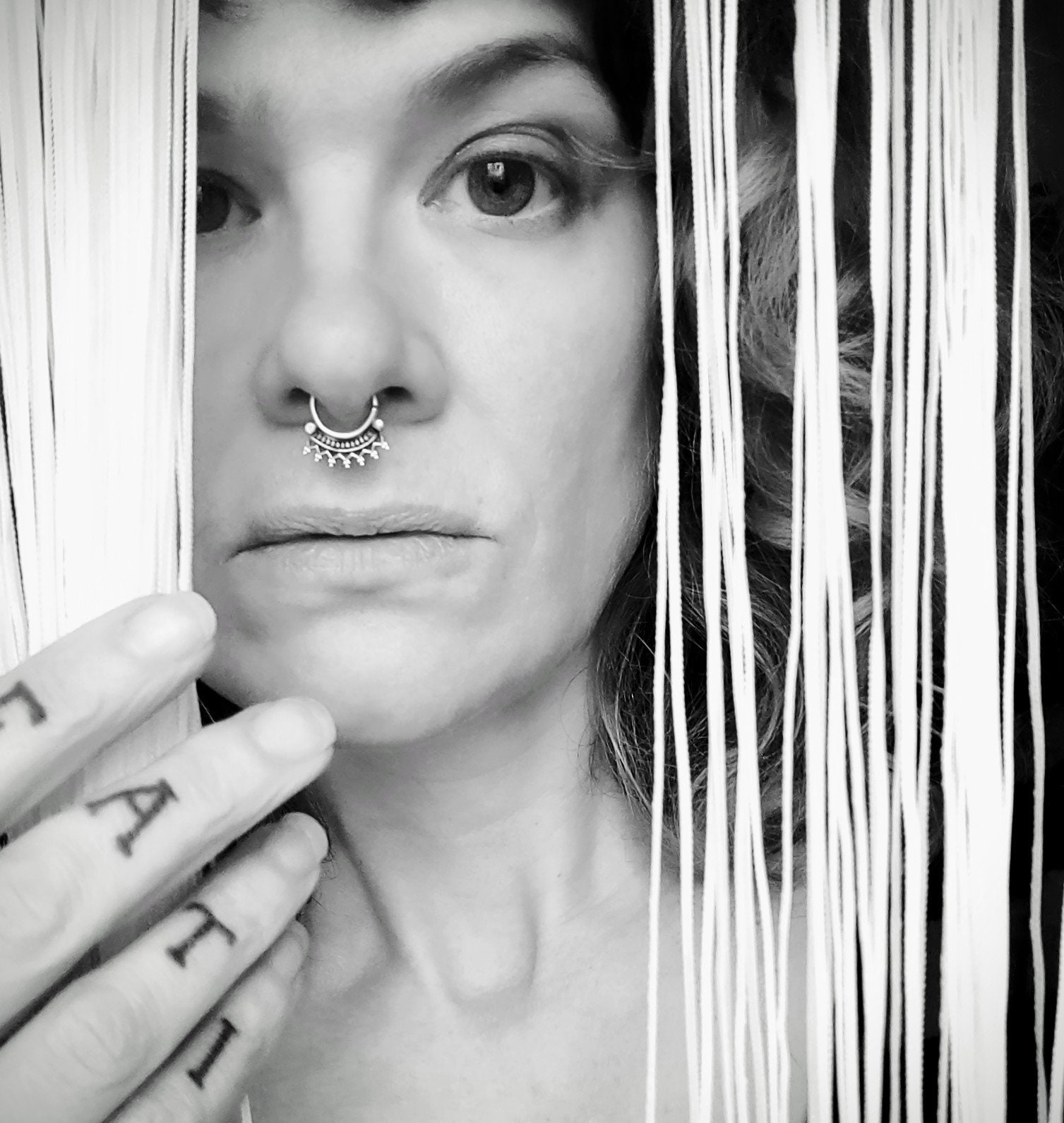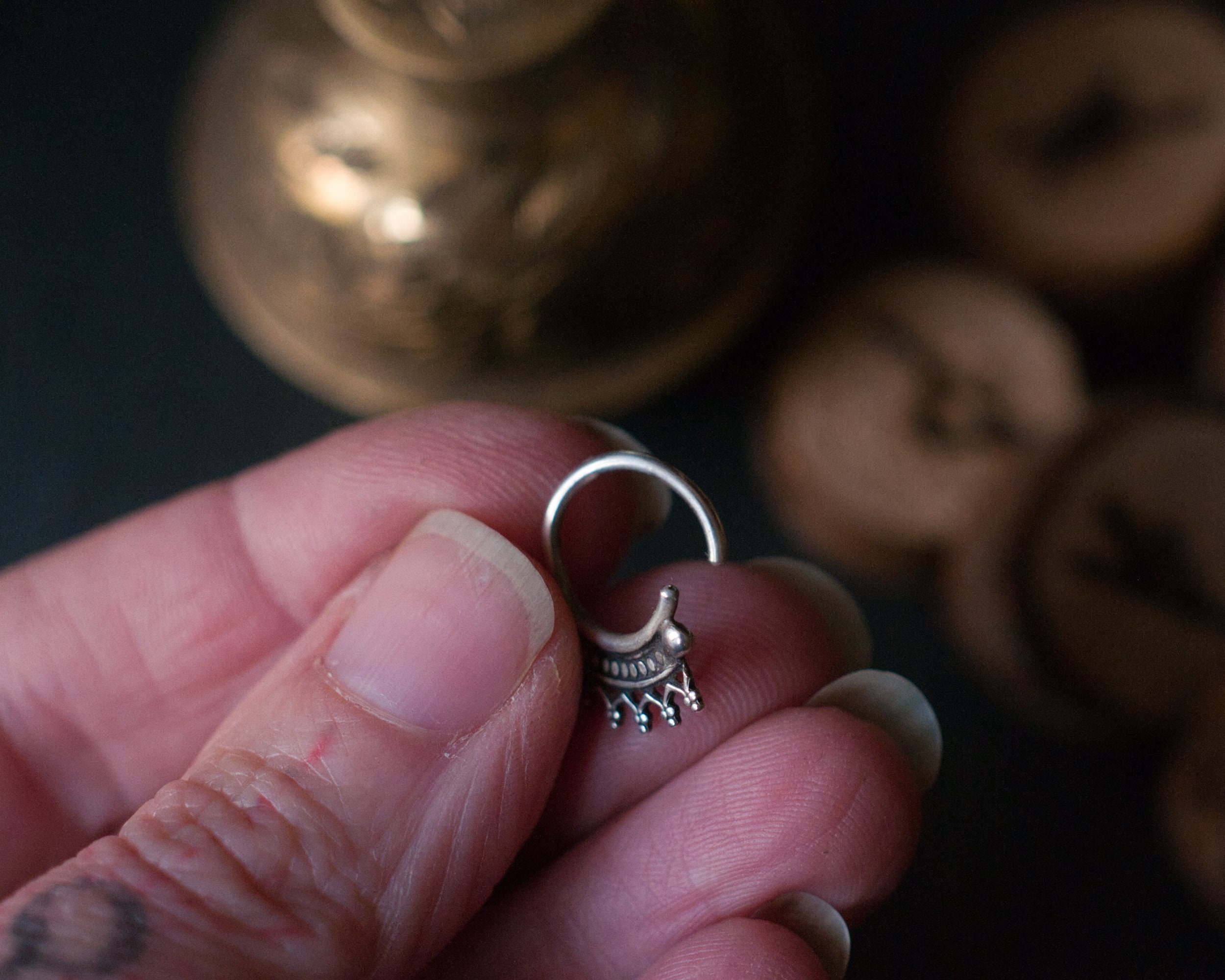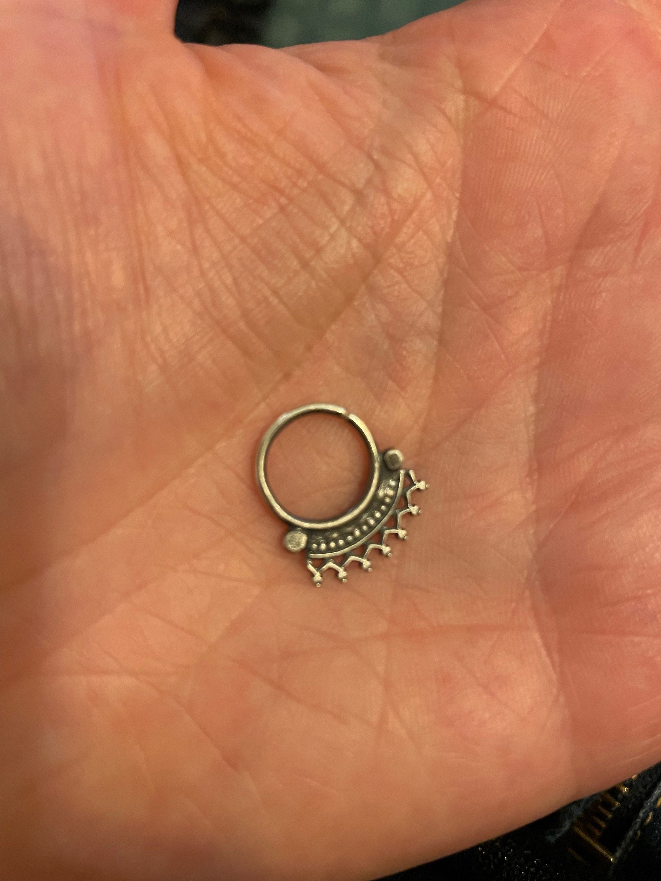 My absolute favourite everyday septum ring in my collection, this tribal hoop is so comfortable to wear and doesn't tickle the top lip like some styles do. Handmade in my studio using .925 sterling silver wires and granulation, each septum ring is then oxidised and polished for an antiqued finish. My piercing rings all open and close by twisting the two ends of the wire away from each other as show in the images. This will ensure that the ring retains its shape and is not damaged by repeated use.