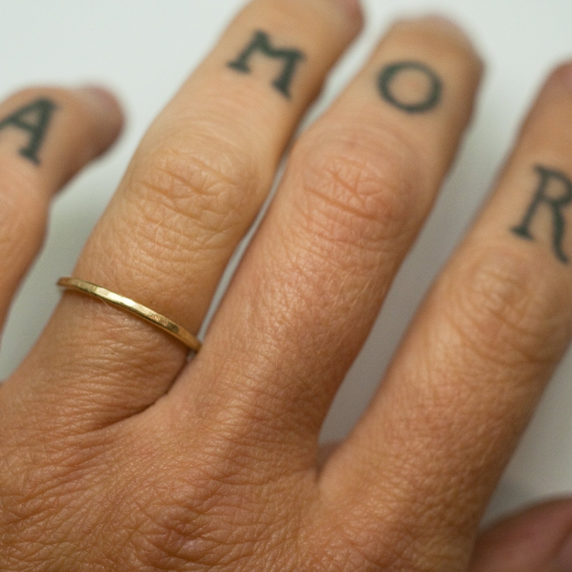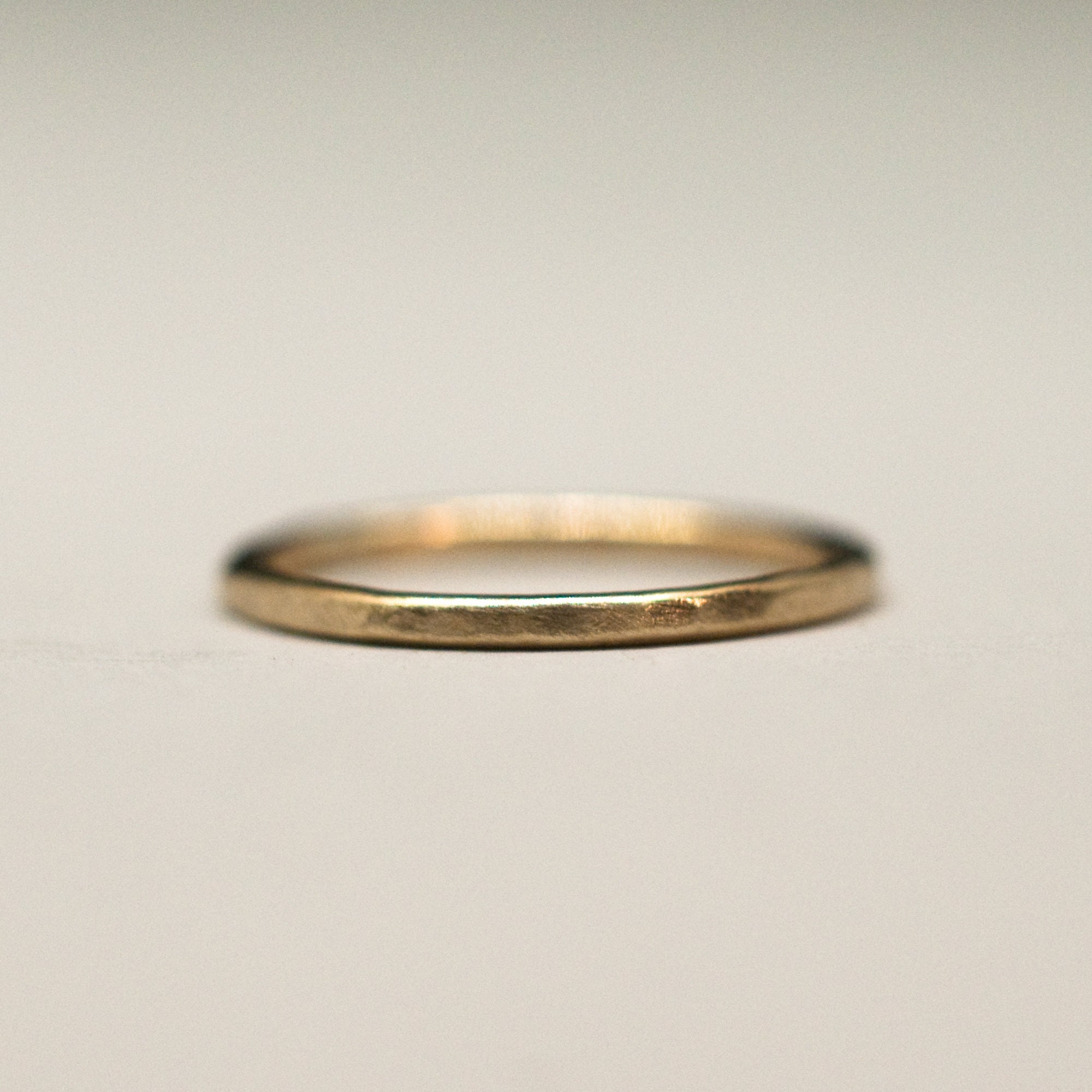 A simple stacking ring in your choice of solid gold... this listing is for a skinny stacking ring in 8k yellow, 14K yellow, red or white gold and 18K yellow or red gold. The band is made from 14 gauge wire (1.5mm) that has been hammered with a matt finish.