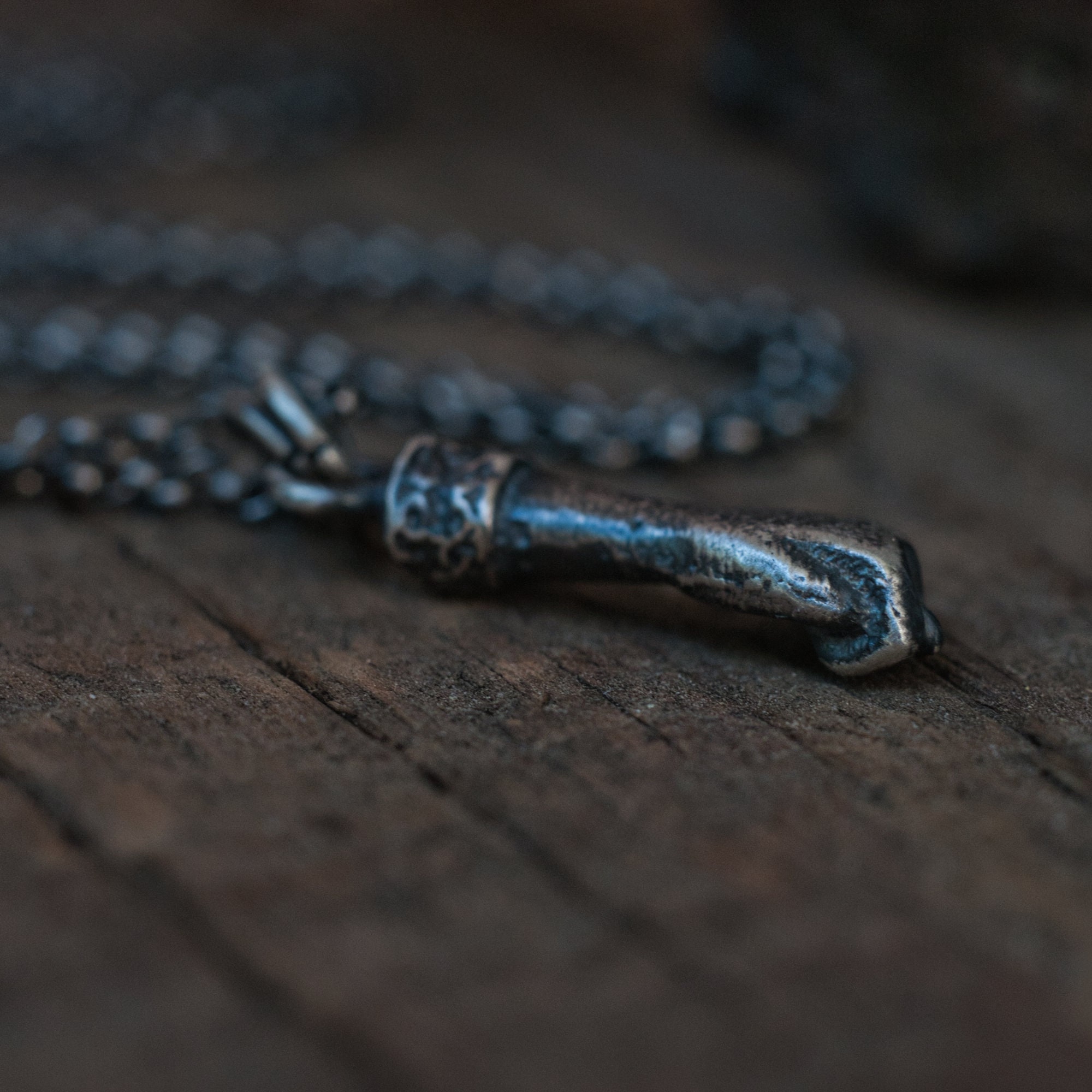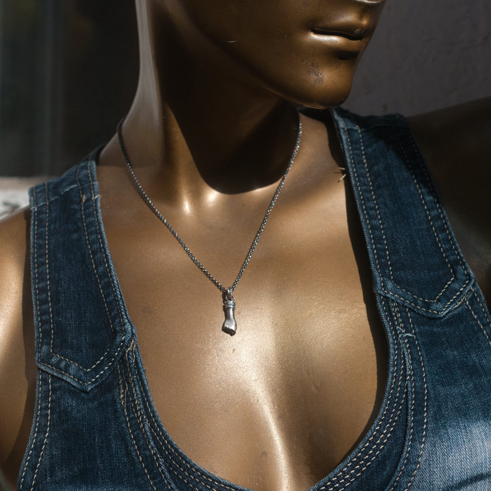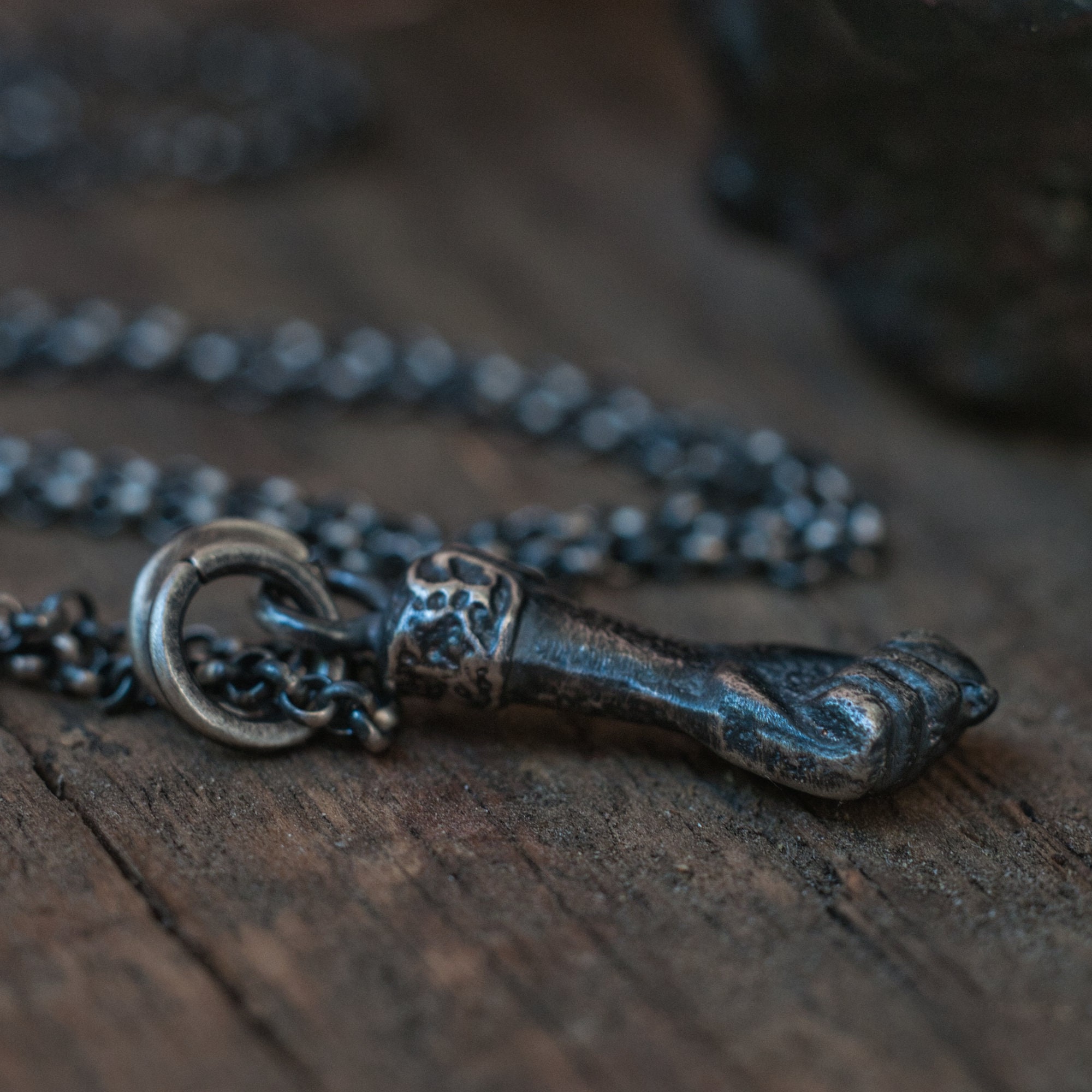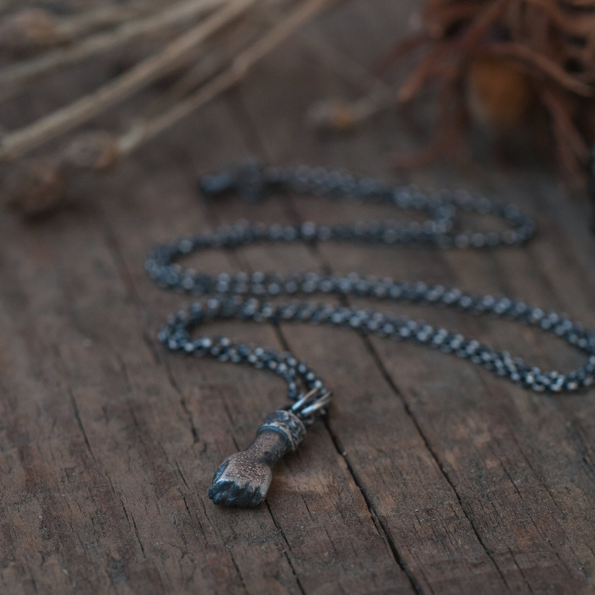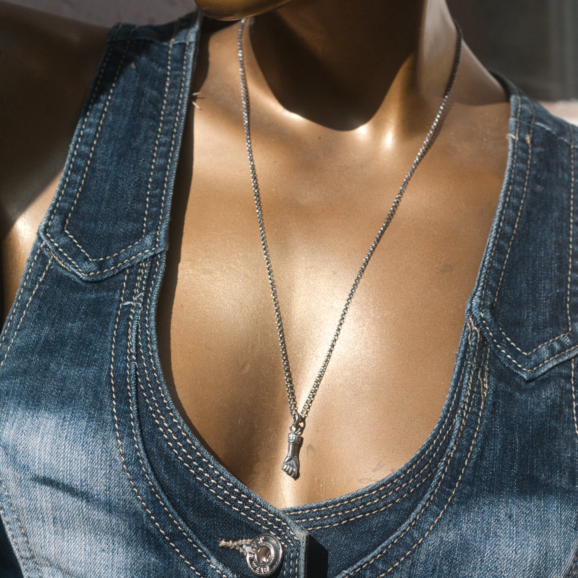 This little sterling silver Figa is sand cast and oxidised for an antiqued look and it can be purchased as a pendant only or with an 18"antiqued sterling silver rolo chain.