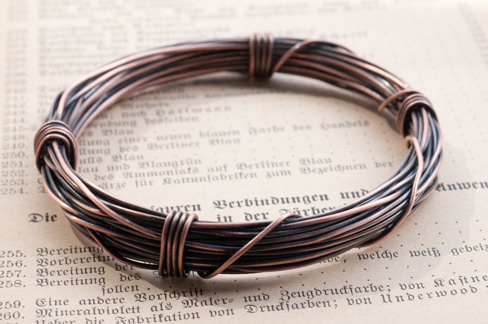 Thick chunky wire wrapped bangle in oxidised copper or oxidised brass stacking bangles, wound and bound, infinity bracelet, unisex bangle