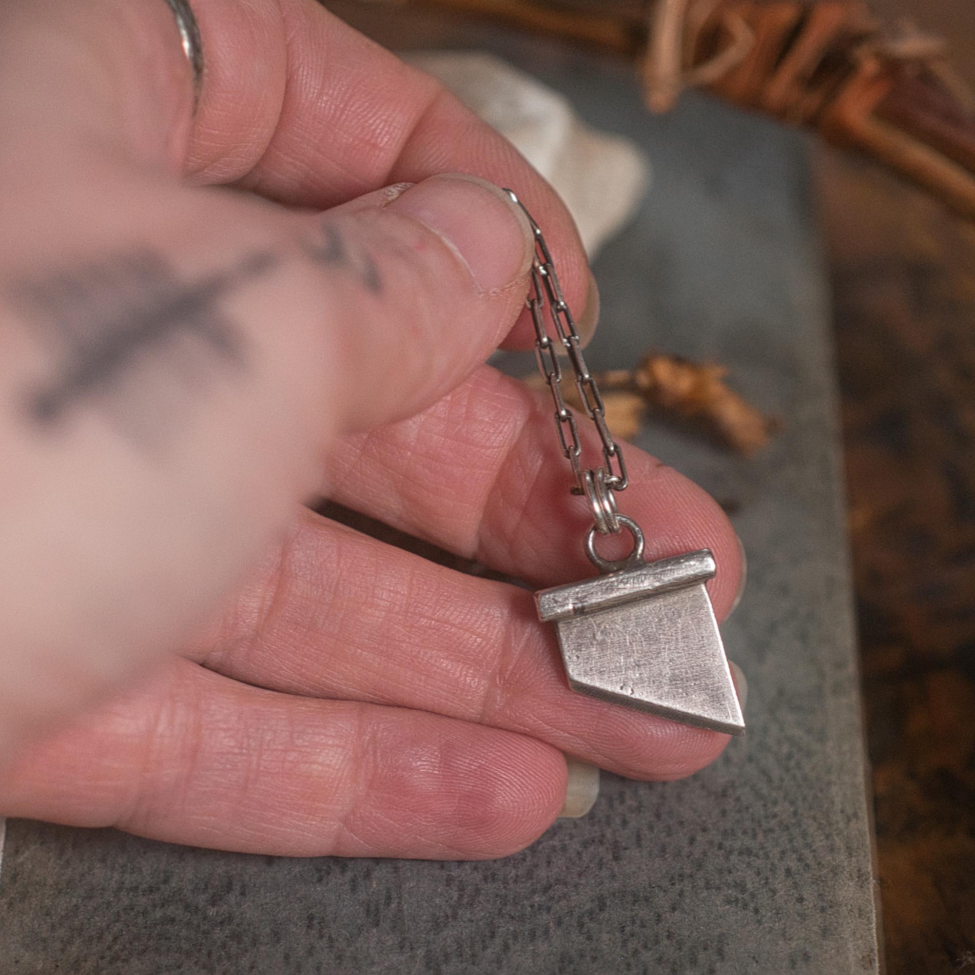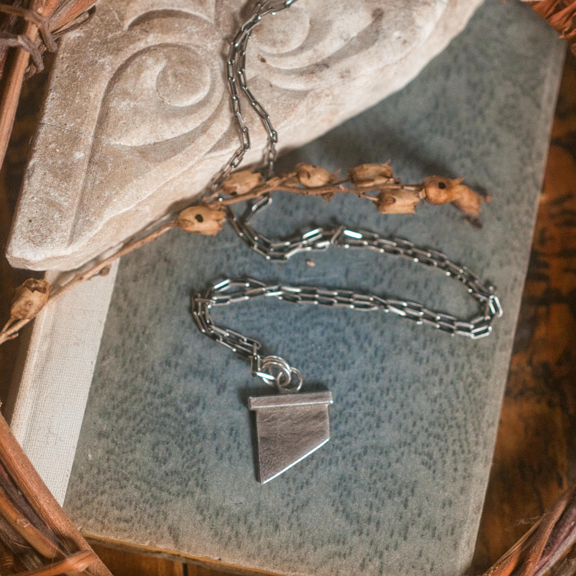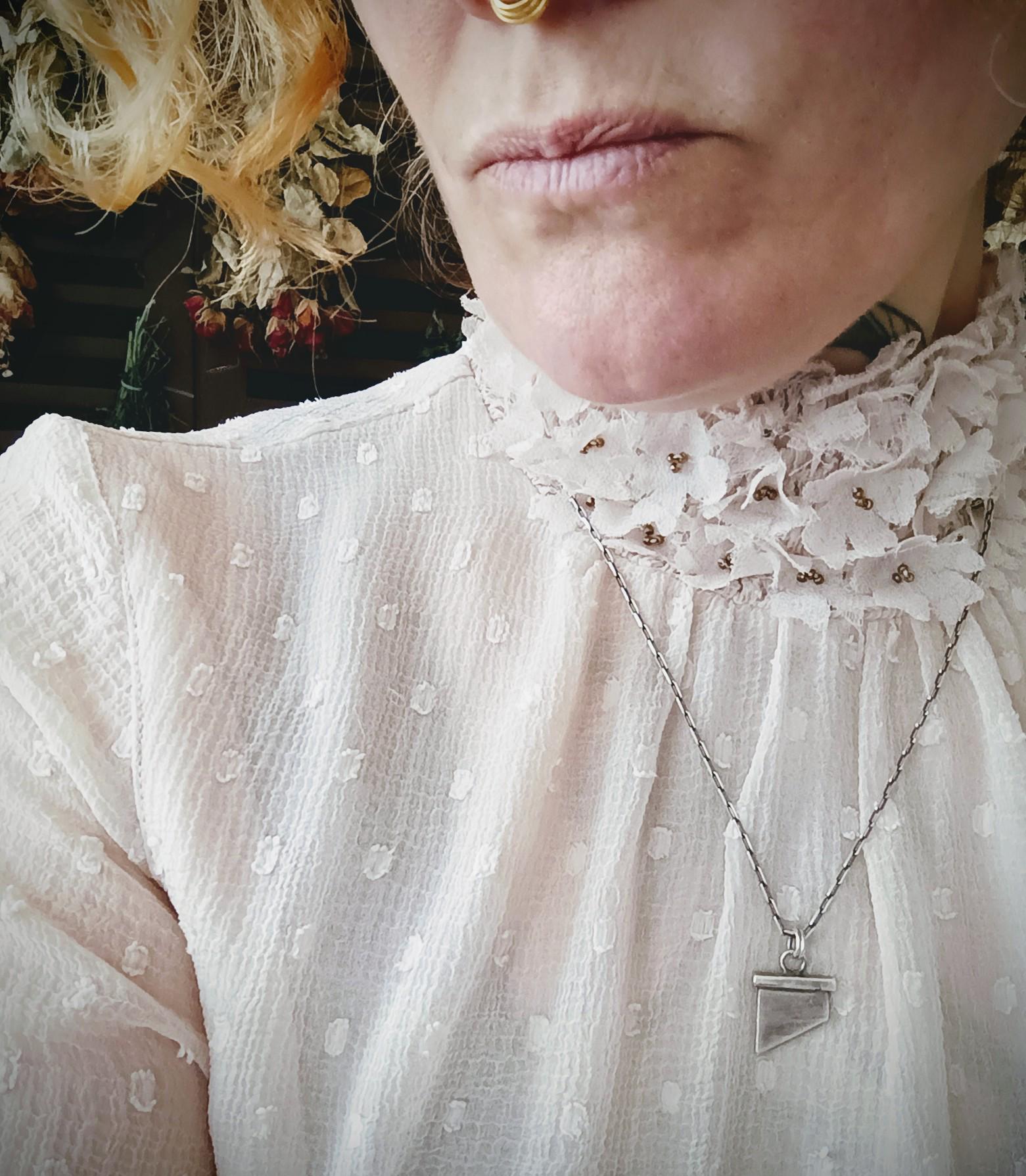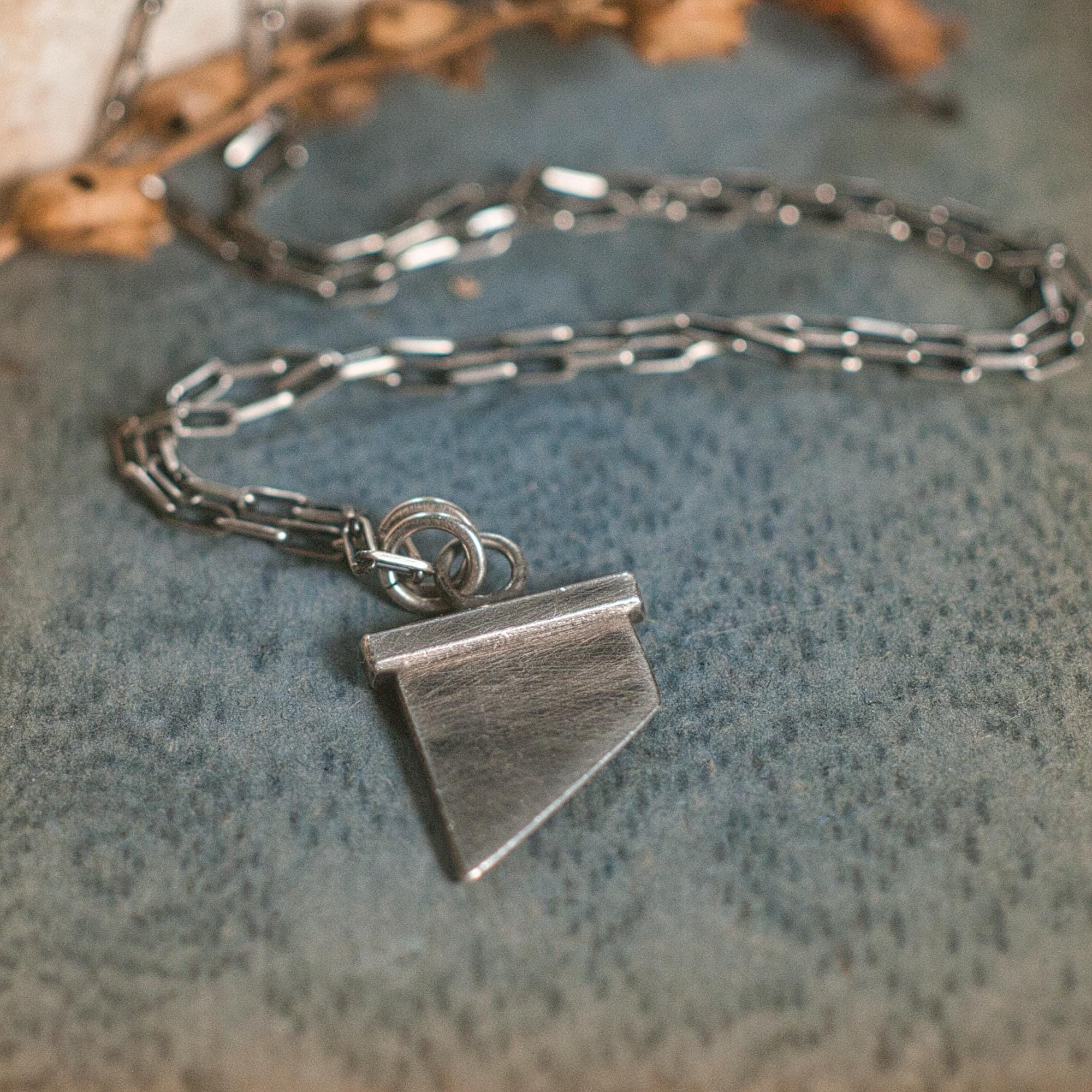 A necklace made for those of us that yearn for a little more social justice in this world... a solid silver French guillotine blade crafted from sheet and wire fabricated in my Berlin atelier... the blade has been oxidised and weathered... it is not a shiny perfect unused blade but one that has seen heads roll, practical, utilitarian... a tool not superficial bling.