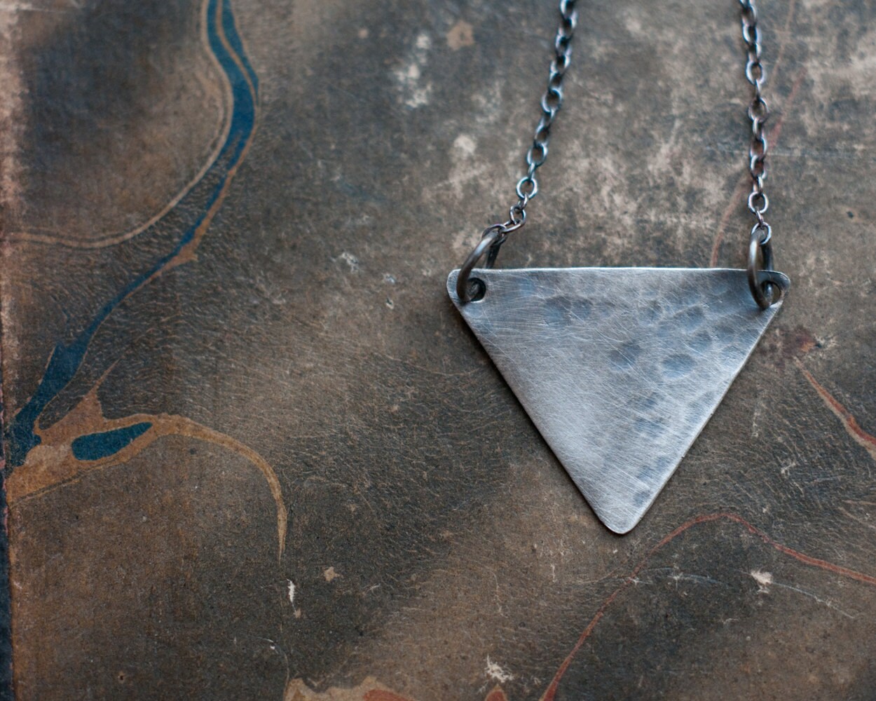 Miniature Alchemy necklace, Water symbol in sterling silver, Feminine symbol, geometric design, triangle necklace, oxidised silver.