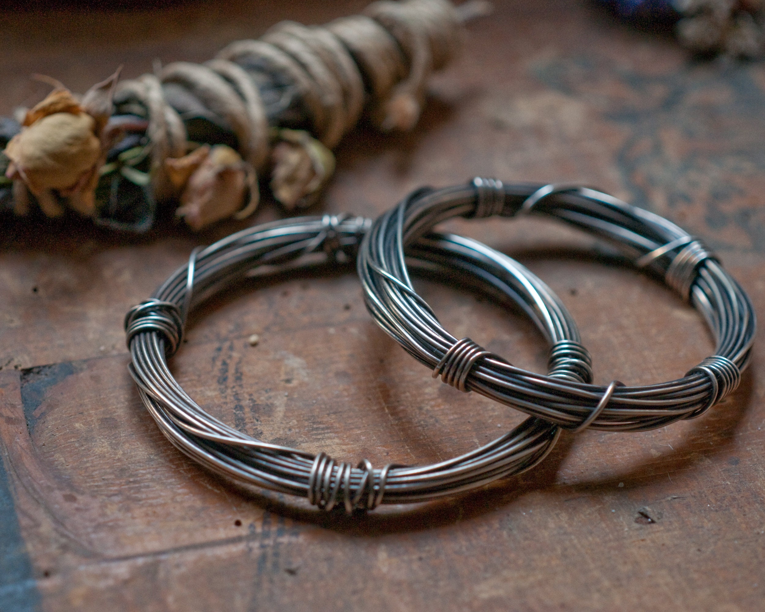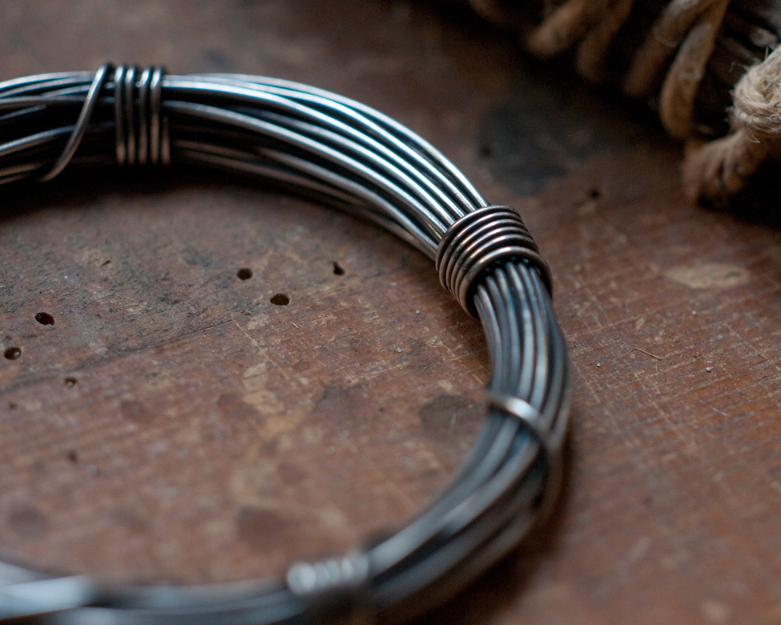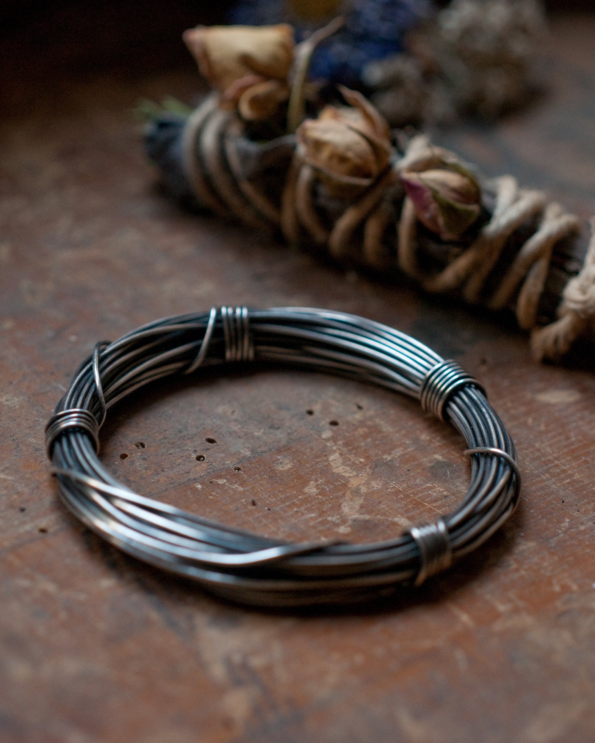 A full seven metres (56 grams) of continuous blackened sterling silver wire wound around and bound with it's own ends… infinity on your wrist.