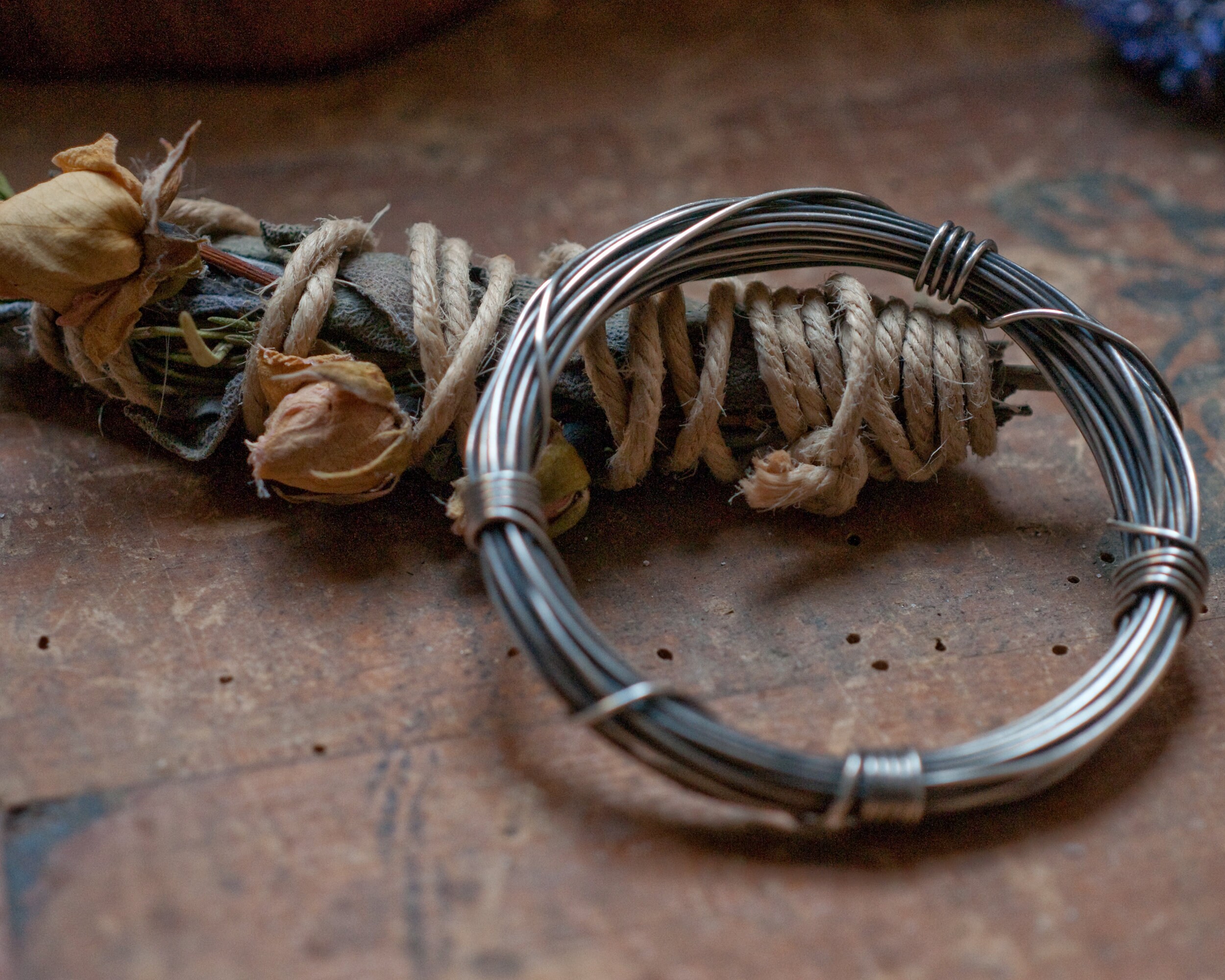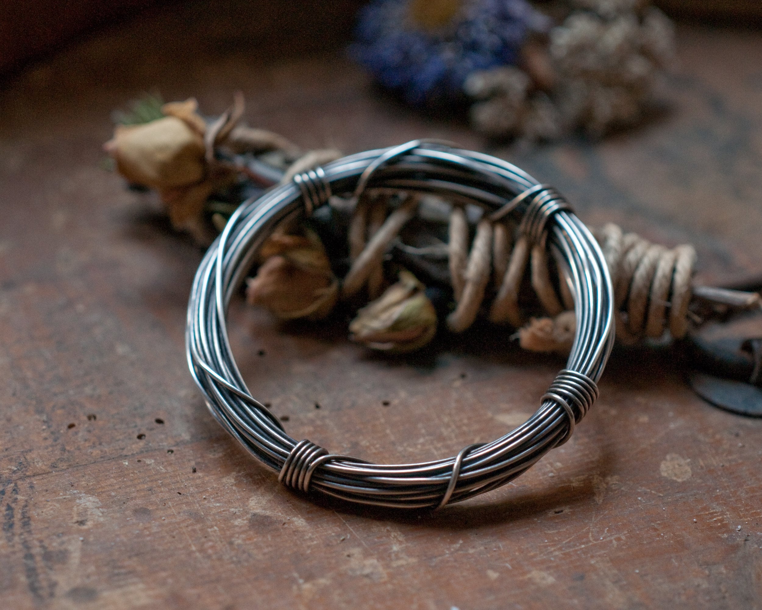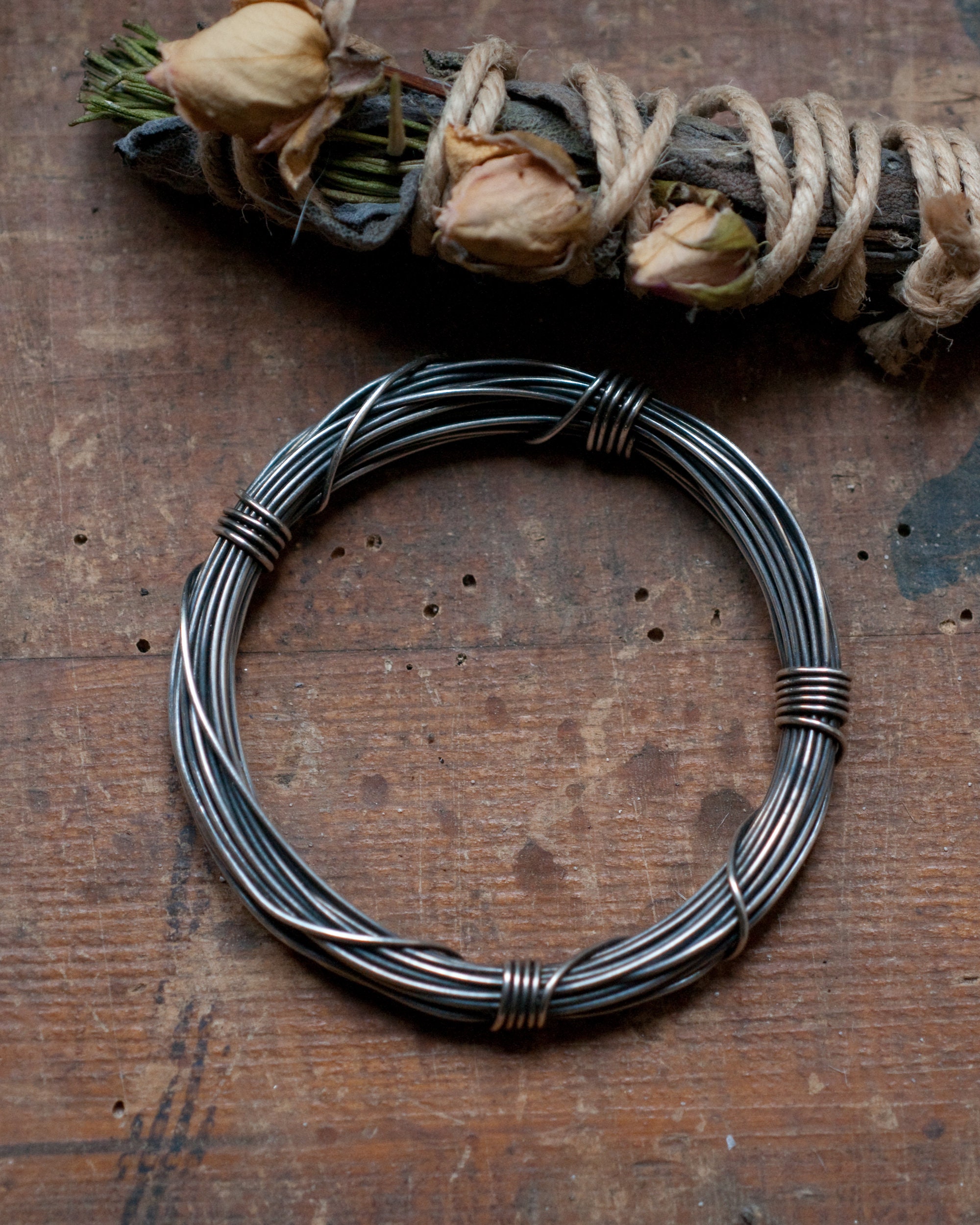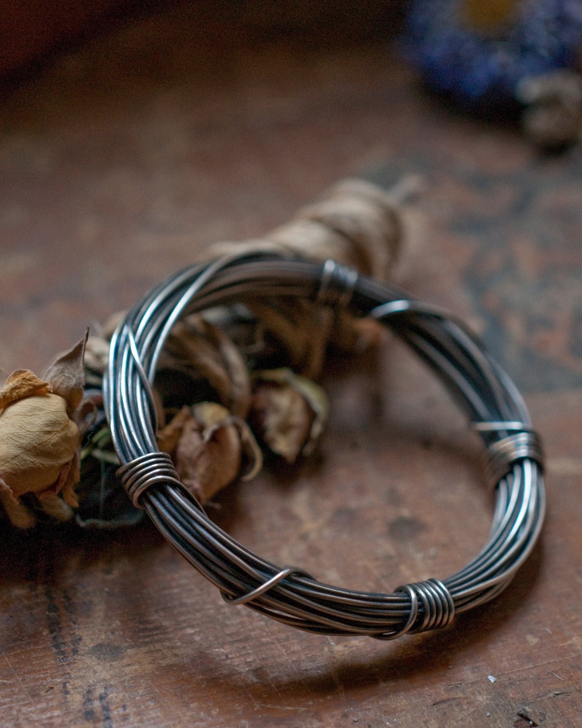 A full seven metres (56 grams) of continuous blackened sterling silver wire wound around and bound with it's own ends… infinity on your wrist.