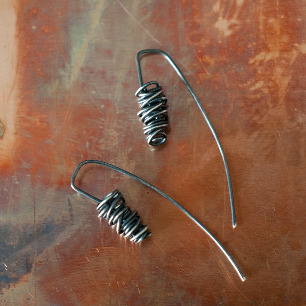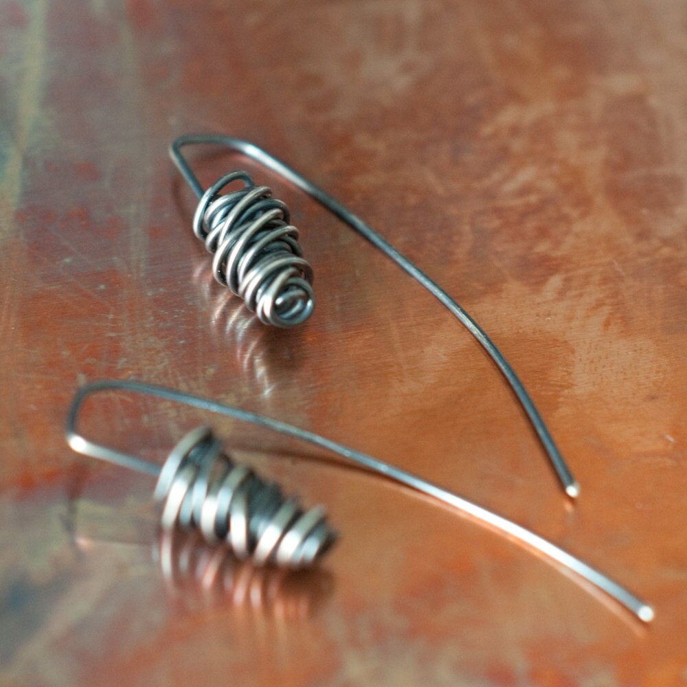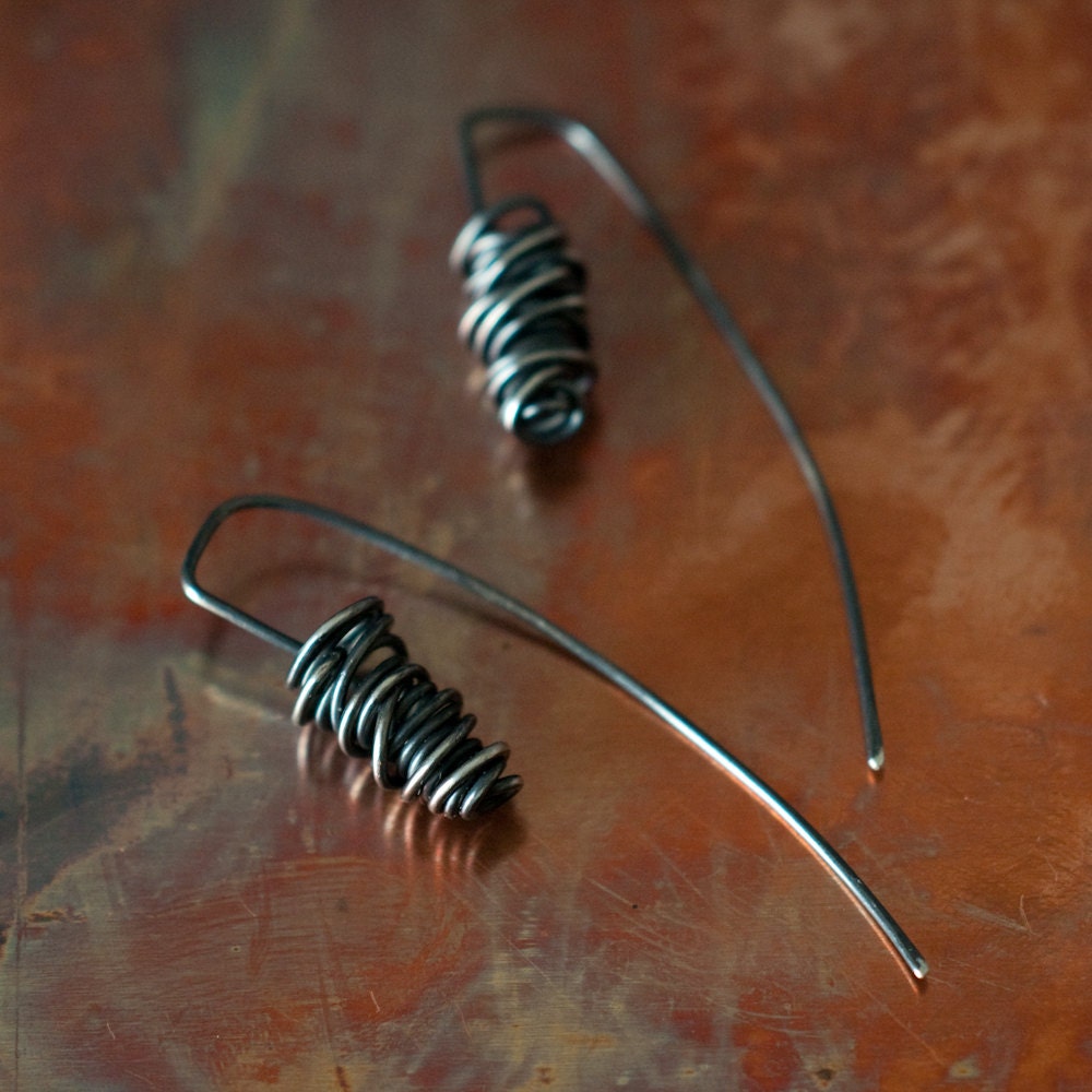 FW15 collection, Wound and Bound, COIL earrings in blackened sterling silver, tornado earrings, wrapped wire, designer earrings.
