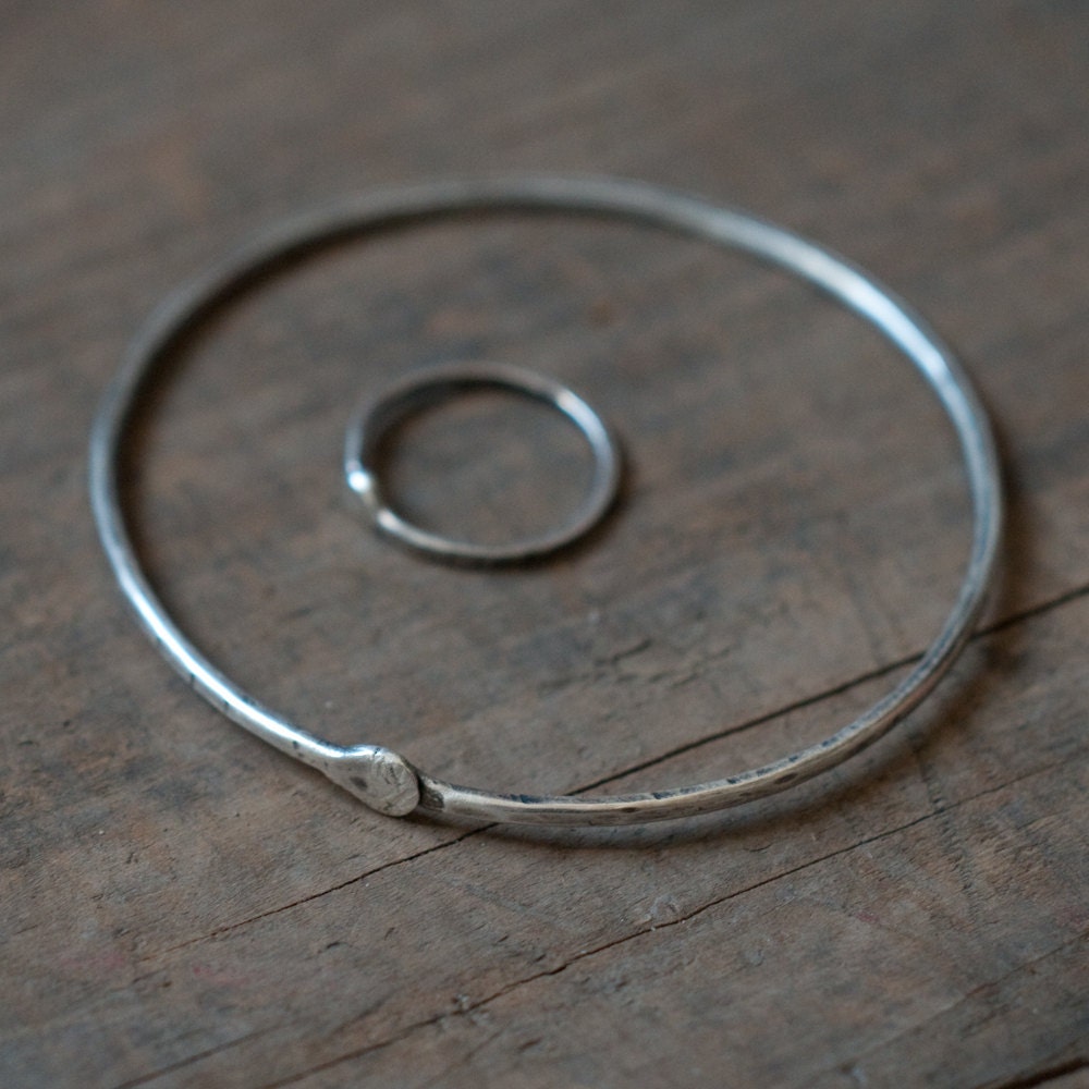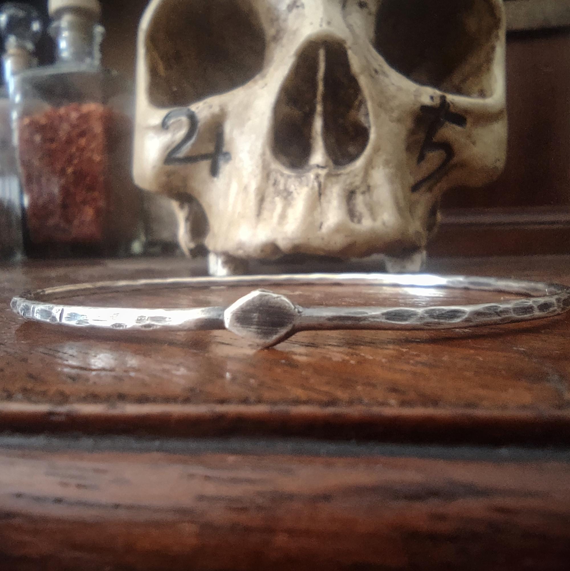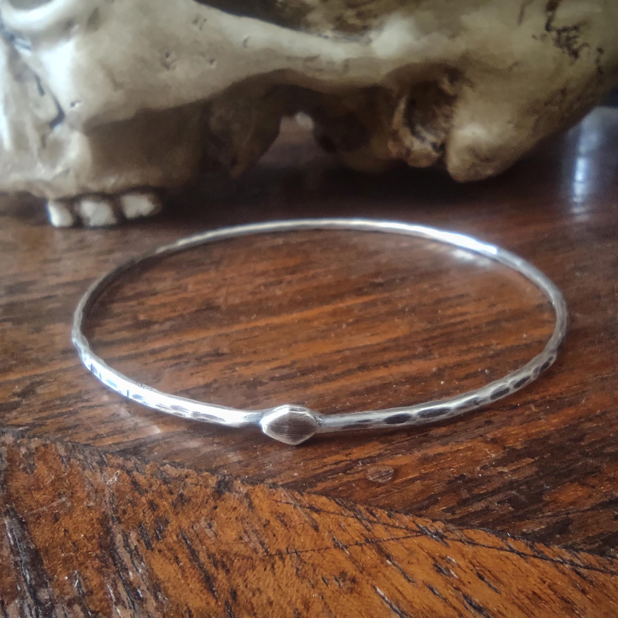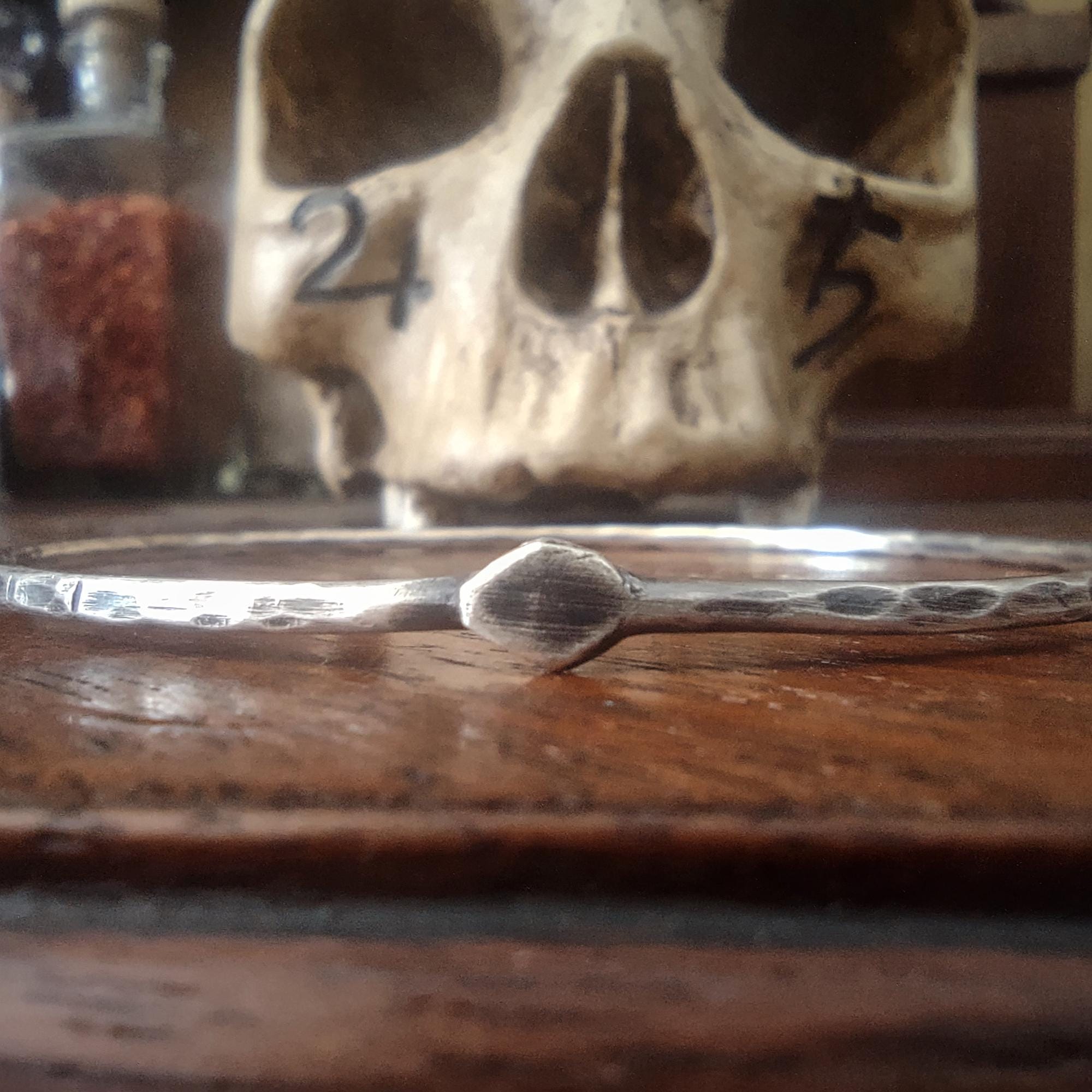 Ouroboros bangle, KREIS collection, skinny stacking bangle, hammered silver bangle, gender neutral, unisex bangle, sterling silver, minimal.