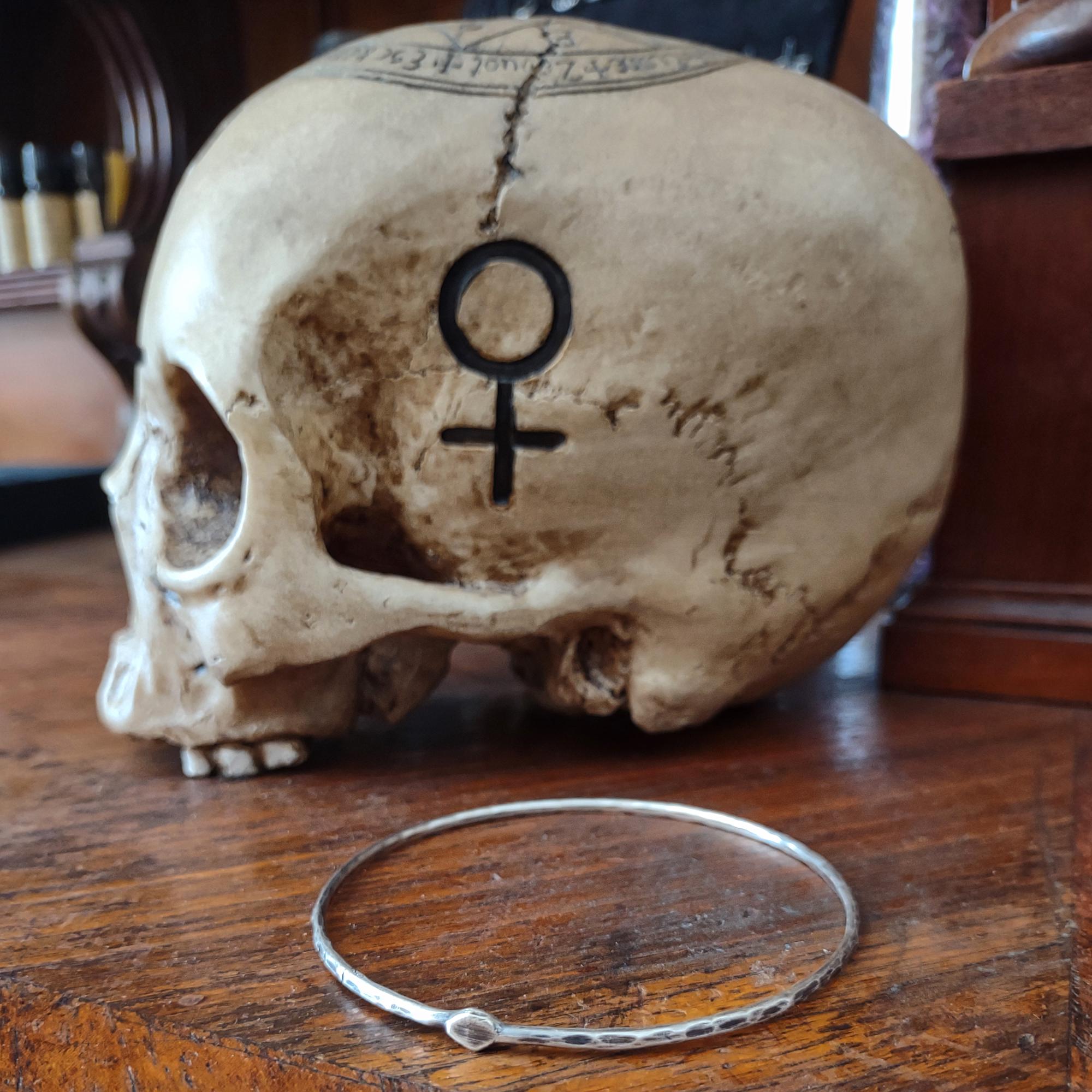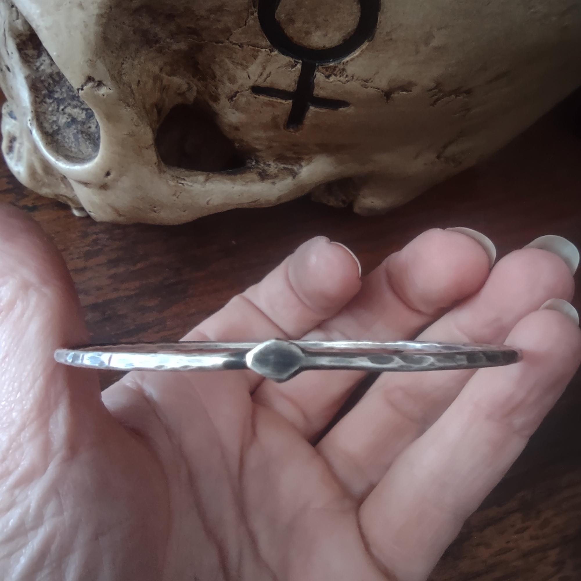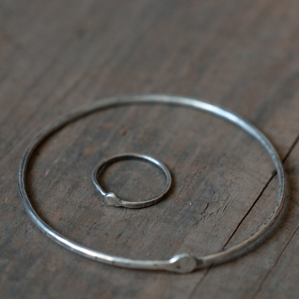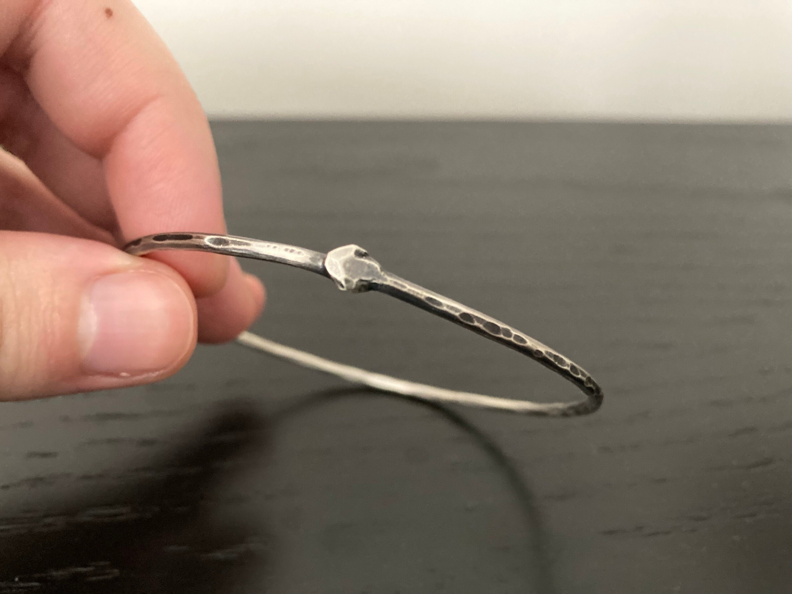 Ouroboros bangle, KREIS collection, skinny stacking bangle, hammered silver bangle, gender neutral, unisex bangle, sterling silver, minimal.