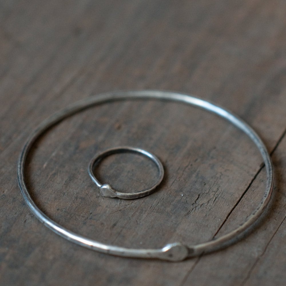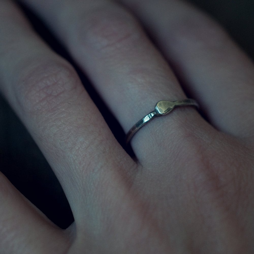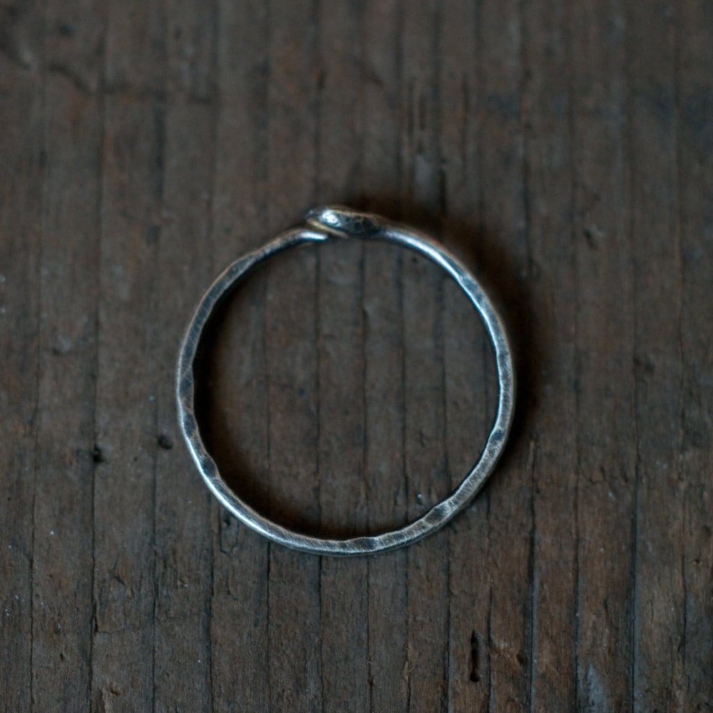 A single length of blackened and scarred 14 gauge in sterling silver, a snake devouring it's tail. Gender neutral stacking ring for finger, thumb or knuckle.