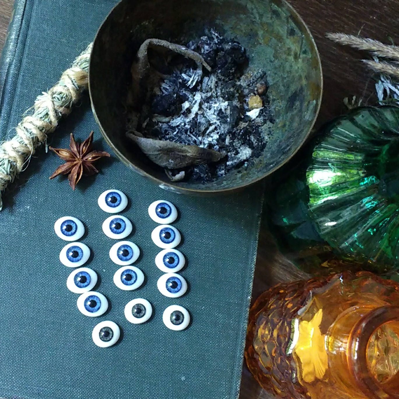 Glass eye ring, evil eye protection talisman, dolls eye, sterling silver eye ring, fancy gallery wire and hammered band, stackable ring.