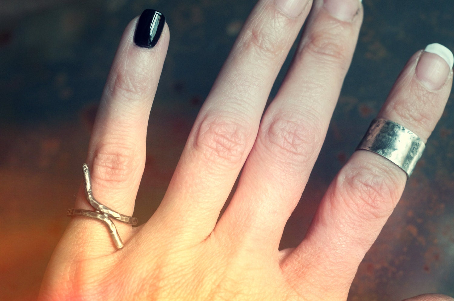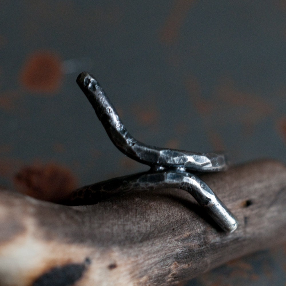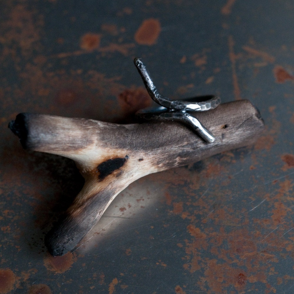 Sterling silver twig ring, Burnt Offerings, Kindling ring, hammered and oxidised silver minimalist ring, gender neutral, finger, pinkie or thumb ring.
