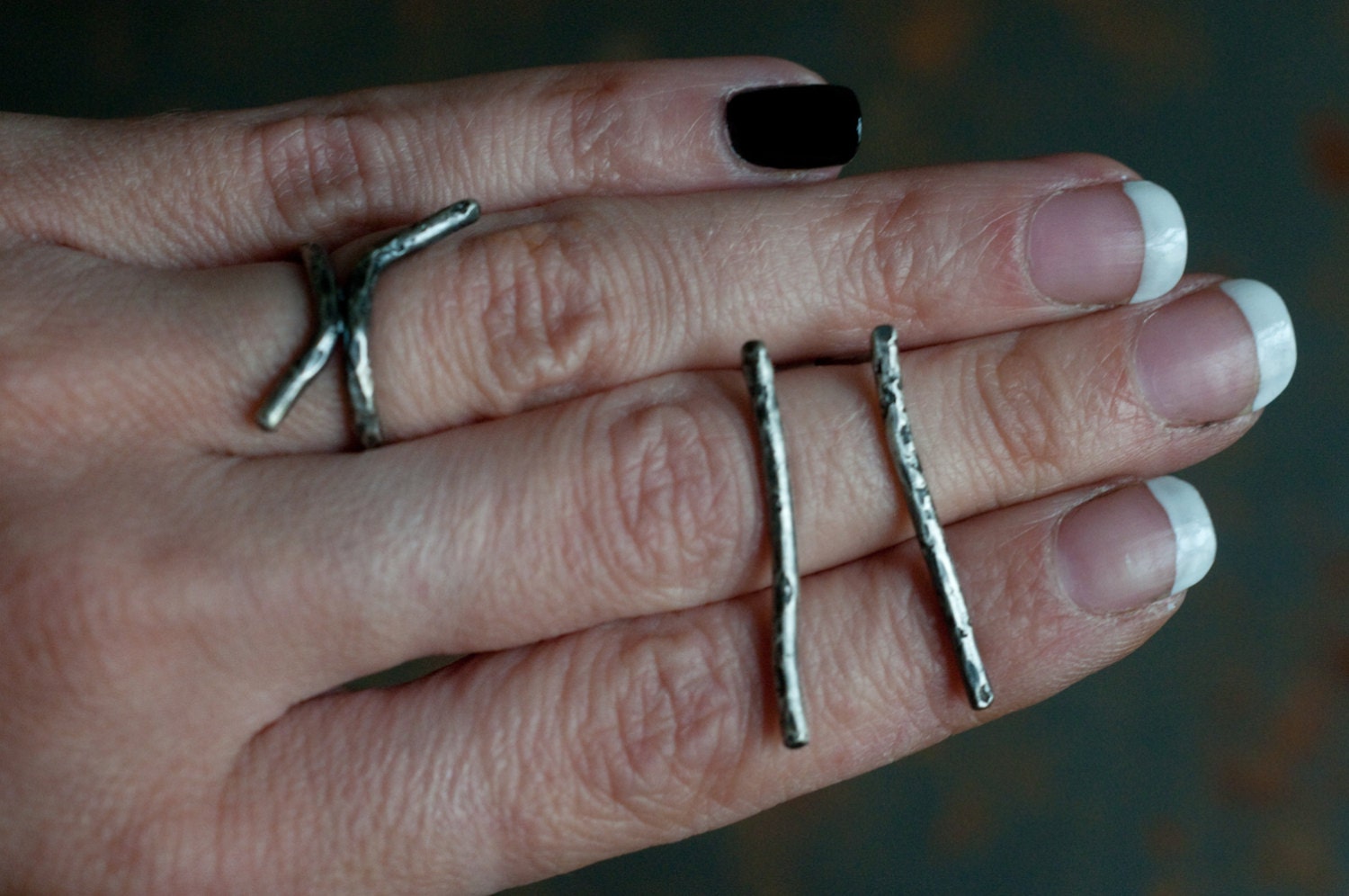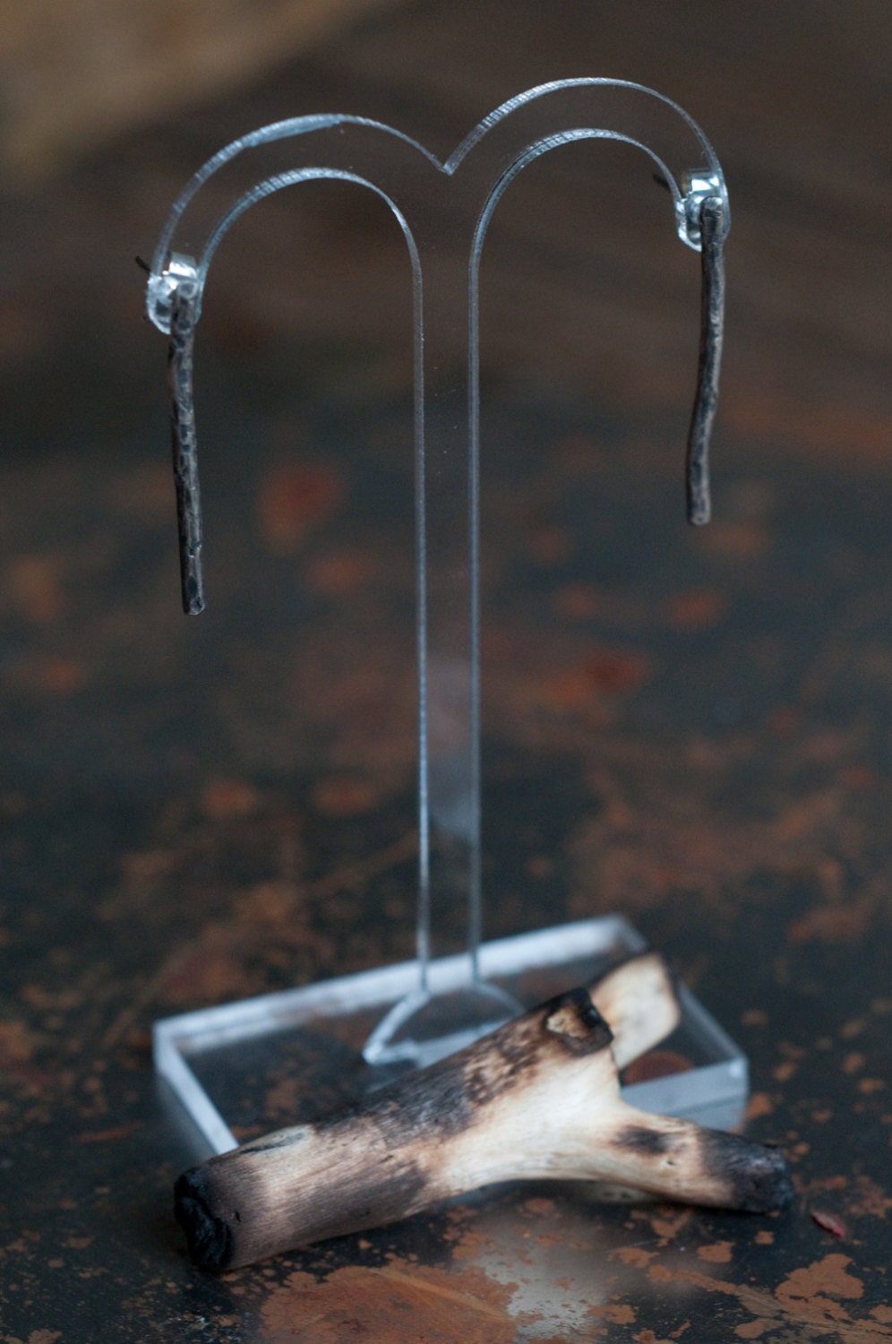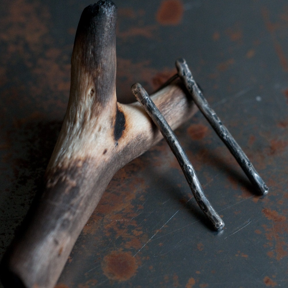 Part of the "Burnt Offerings" collection... "Kindling" earrings... blackened sterling silver bar studs... twisted and charred branches... simple, minimalist and gender neutral.