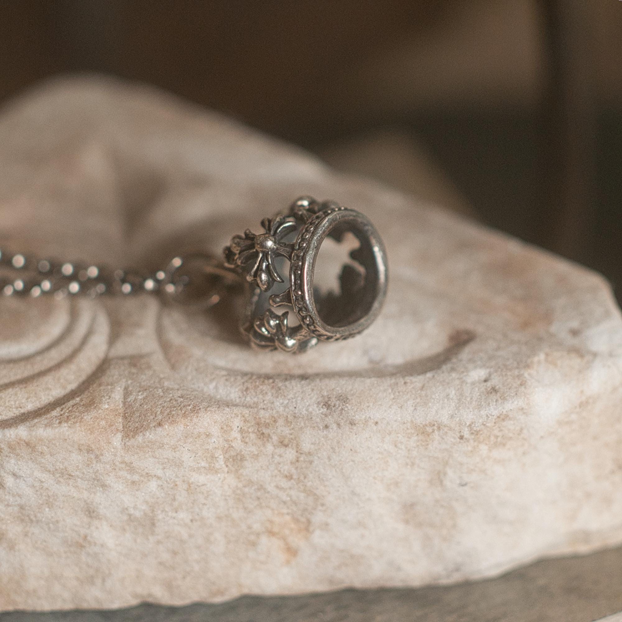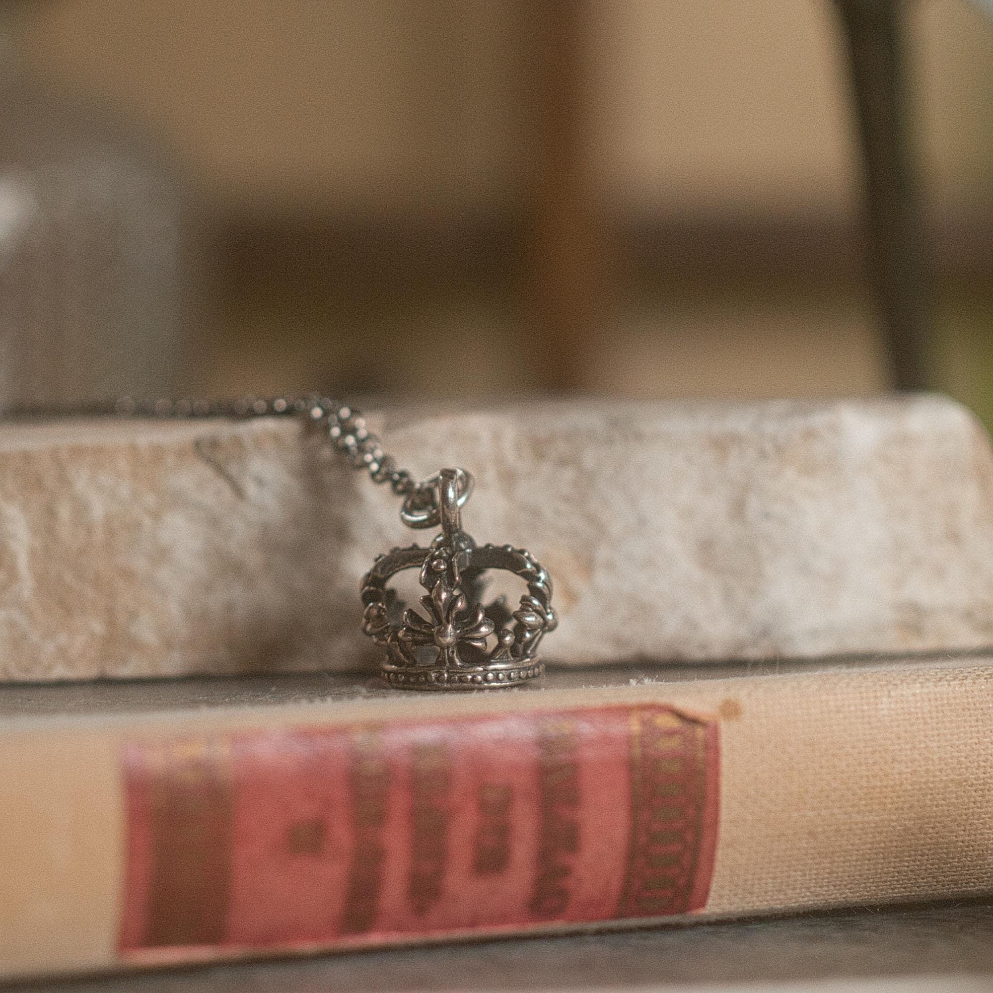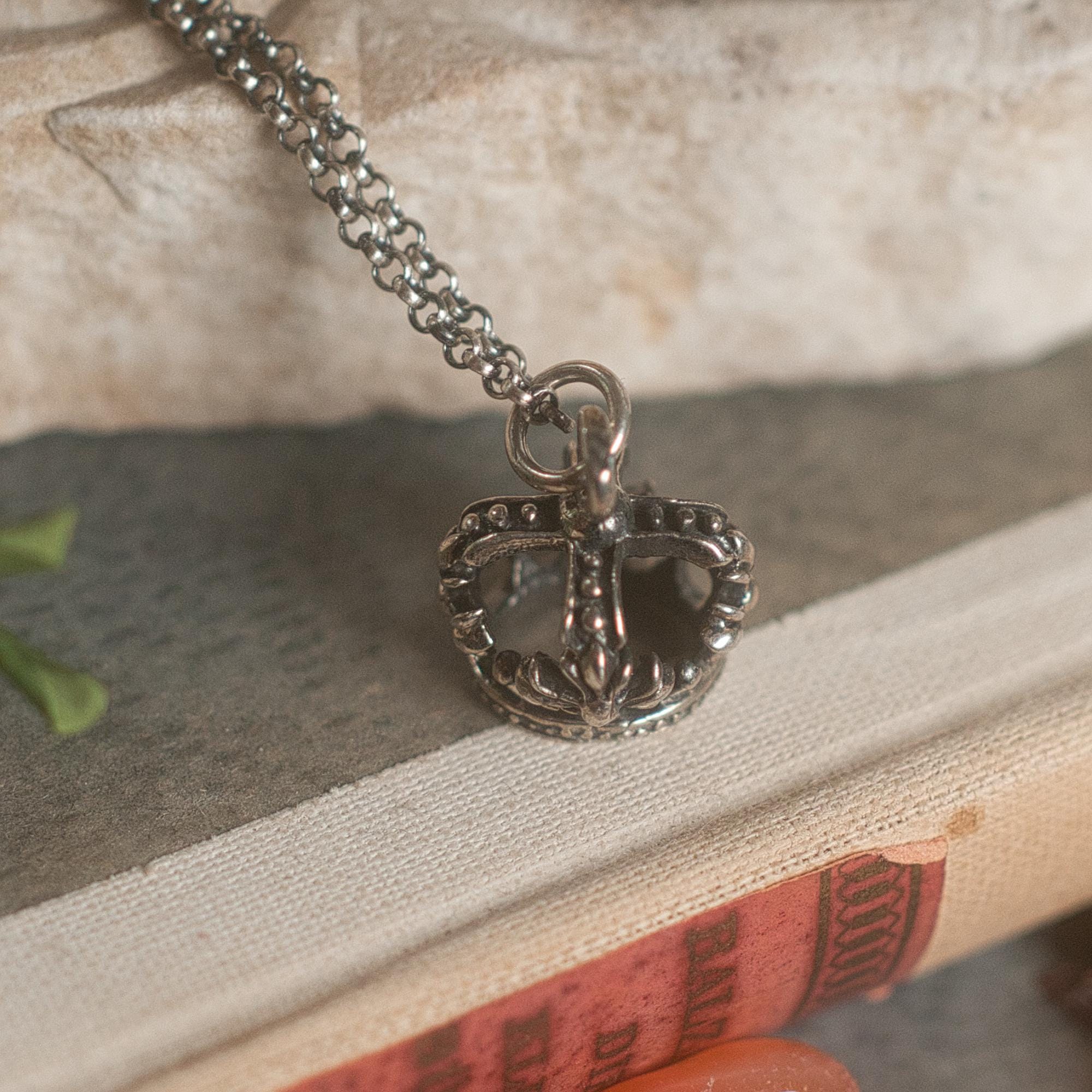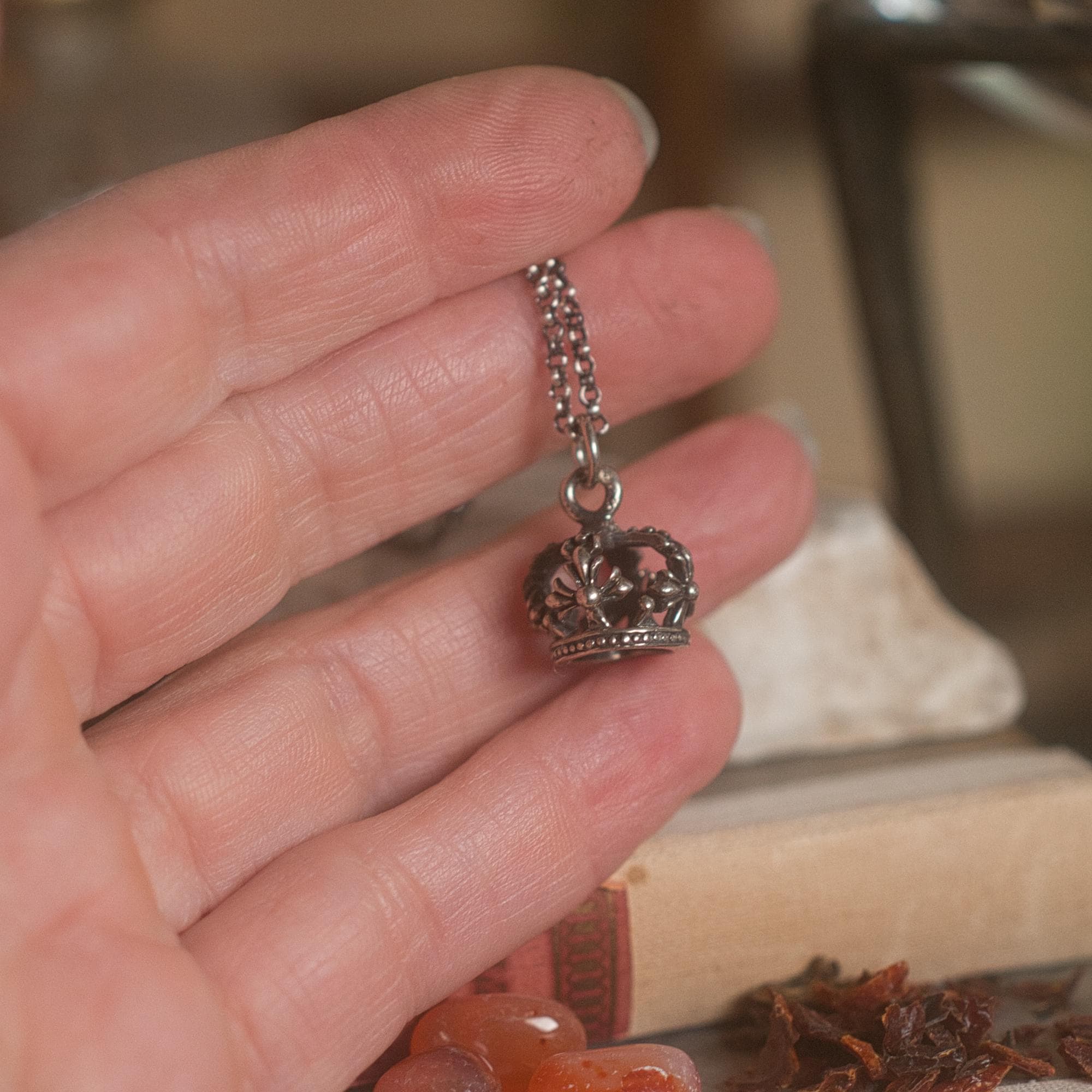 These vintage sterling silver crown charms are NOS (new old stock) from a liquidation, I added a patina, polished them and added an 18” (46cm) sterling silver rolo chain with spring ring clasp.