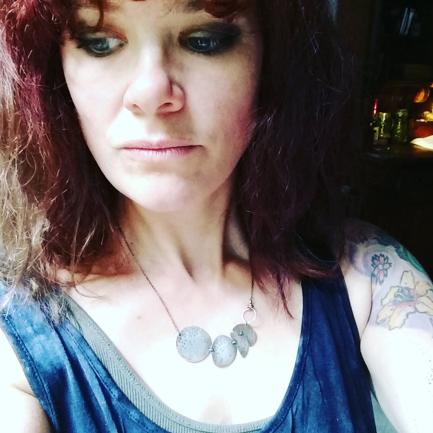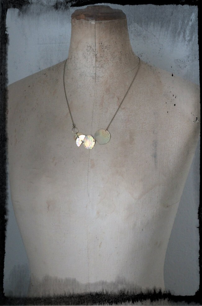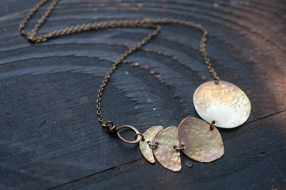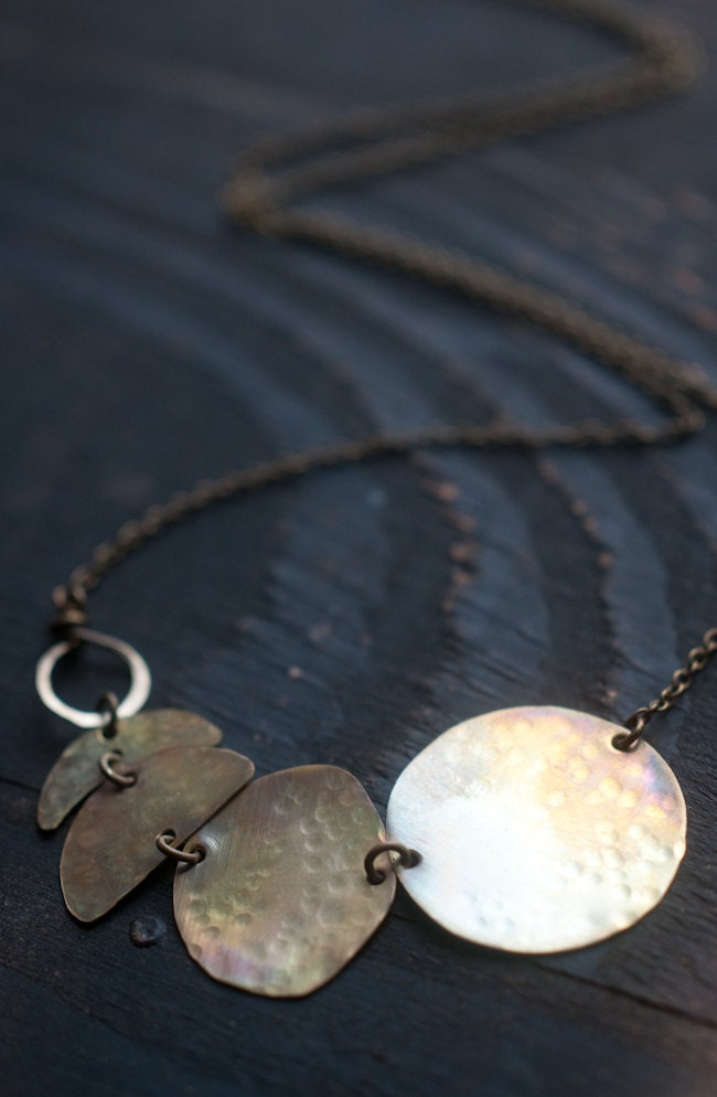 moon phase necklace -lunar cycle - lunar phase - hammered sterling silver - oxidised - moon Goddess necklace, fire patina, hammered brass.
