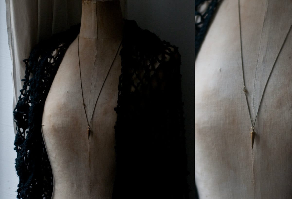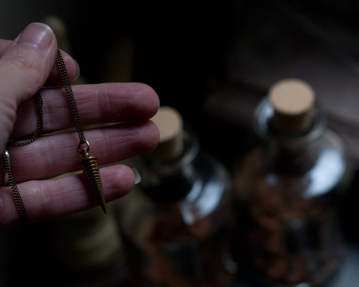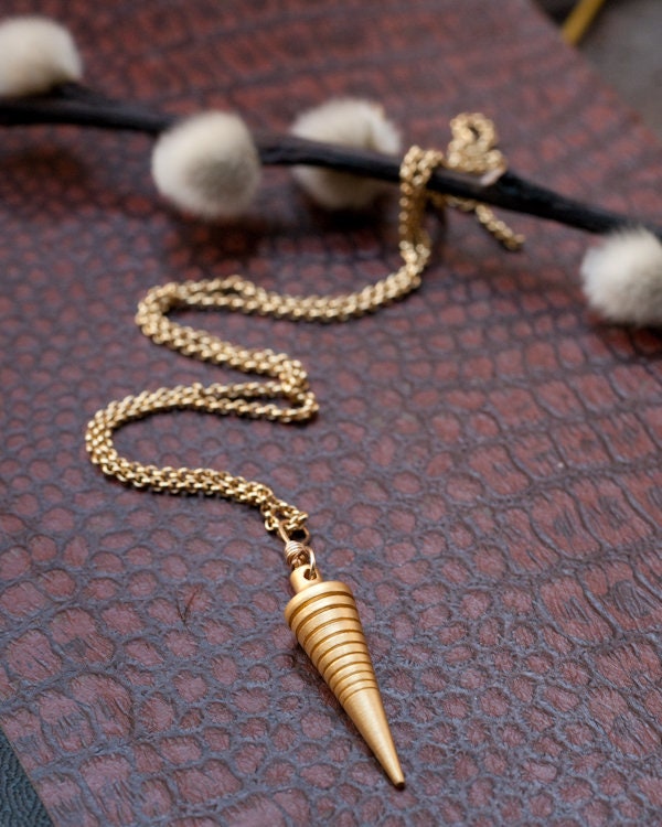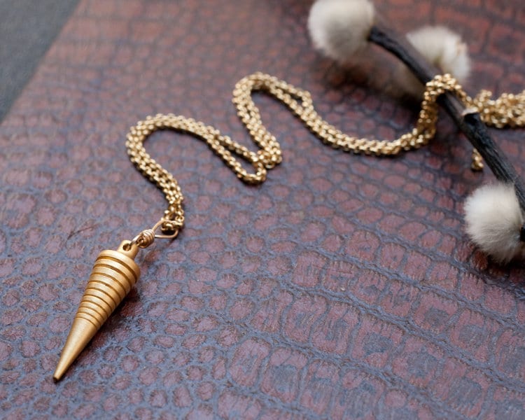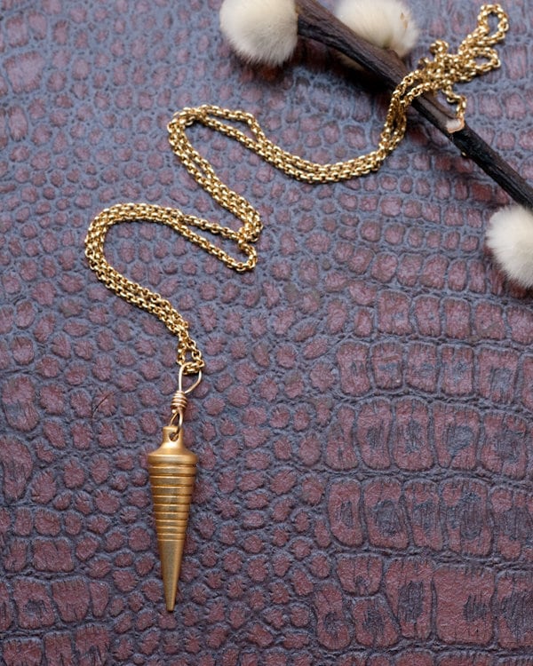 Sibyl necklace, brass pendulum, divination tool, gold fill, silver plated, modern minimal esoteric jewellery, diviner, gold spike.