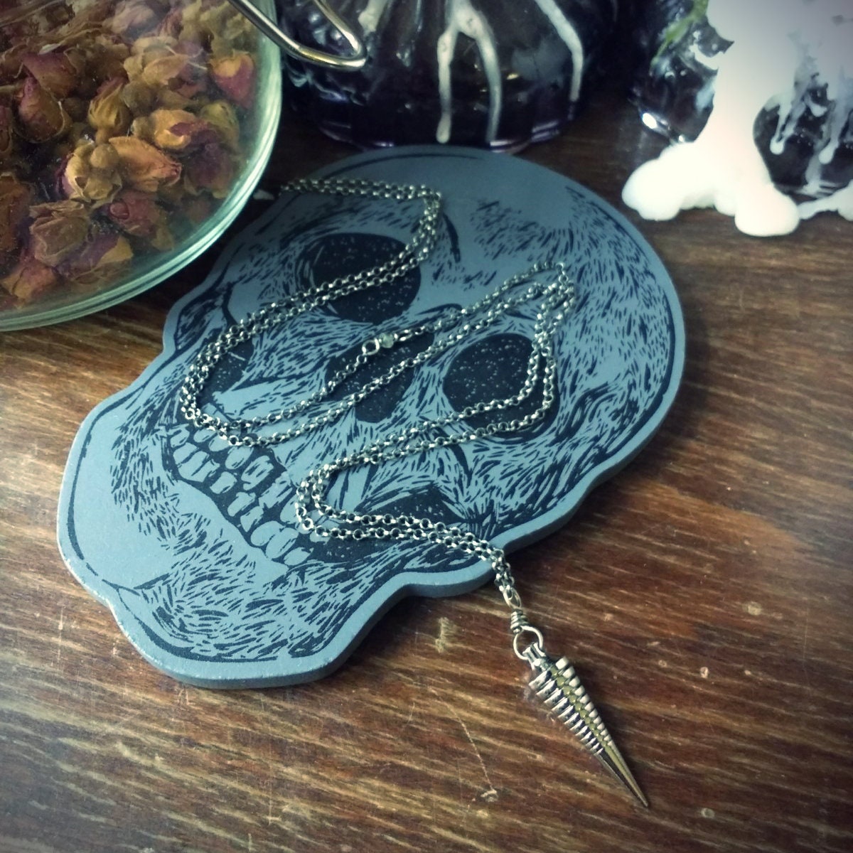 One of my first experiences with divination was with a pendulum and even today I enjoy the simplicity of this method for enhancing and directing your intuition and sixth sense... this pendulum is a minimalist, subtle necklace accented with a single, faceted labradorite bead... a stone of Magick known for intensifying perceptivity.