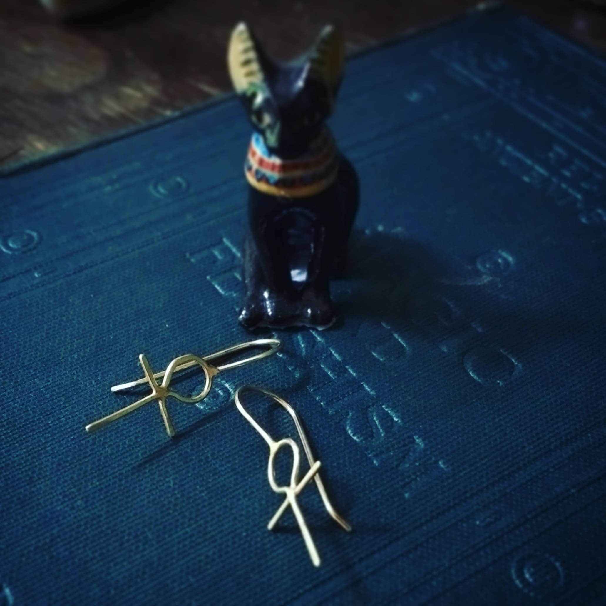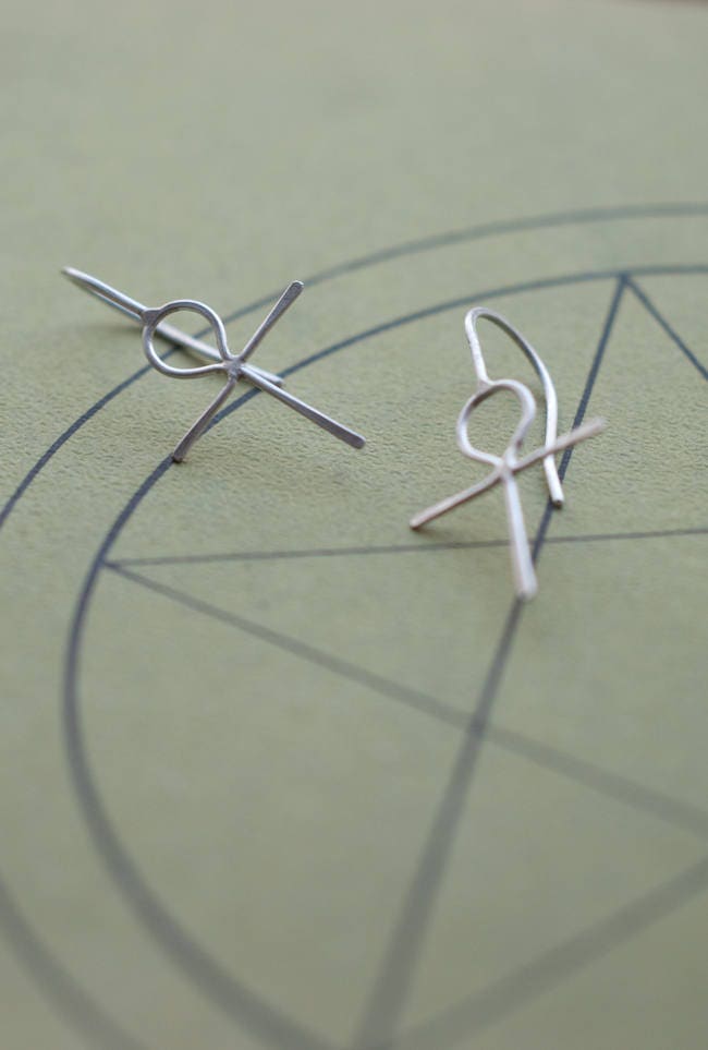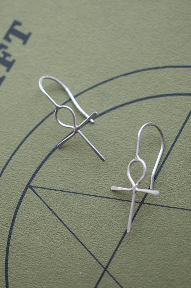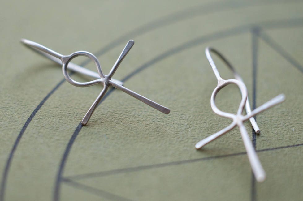 These simple 14k gold earrings have been fabricated from 20 gauge wire and are super comfortable to wear. Choose from solid gold or head over to my earrings section for a sterling silver option (also seen in the 2rd, 3rd and 4th images)... www.etsy.com/listing/179693345/sterling-silver-ankh-earrings-egyptian
