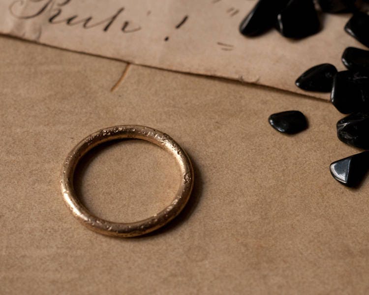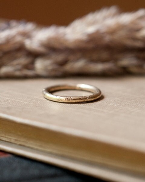 A 2mm round band, textured against stone for a rustic and raw look... because even the strongest love has scars...