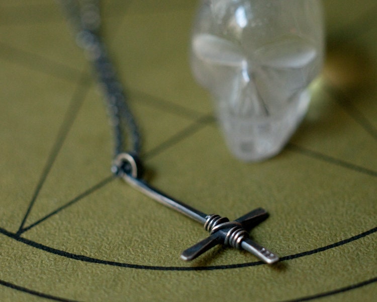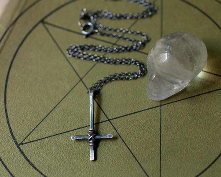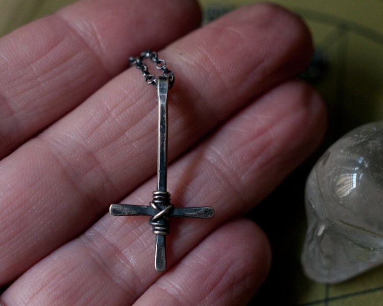 St. Peter's Cross necklace, inverted crucifix pendant necklace, Petrine cross necklace, humility symbol, gender neutral, Latin cross necklace.
