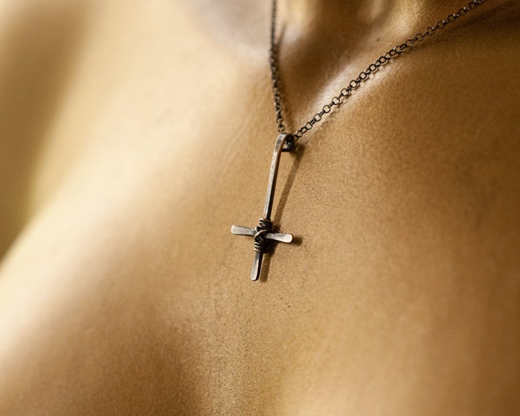 Each St Peter's Cross has been made with sterling silver completely by hand. They alloyed from pure silver, fabricated into wire, soldered, hammered and wire wrapped for strength and stability and come with a default necklace length of 18"