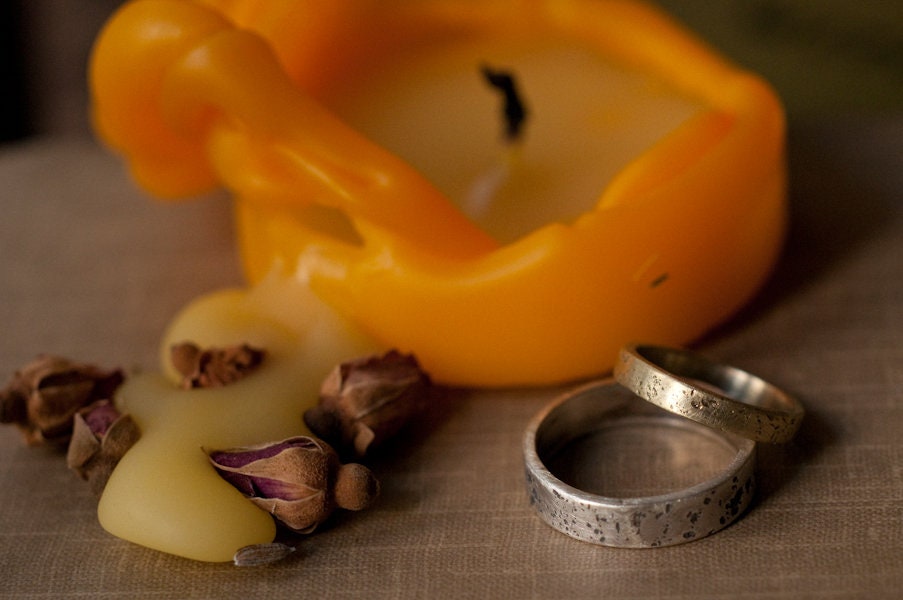 Rustic and raw, these wedding ring have been textured against stone because the strongest love has scars. In solid gold, red, yellow and Palladium white.