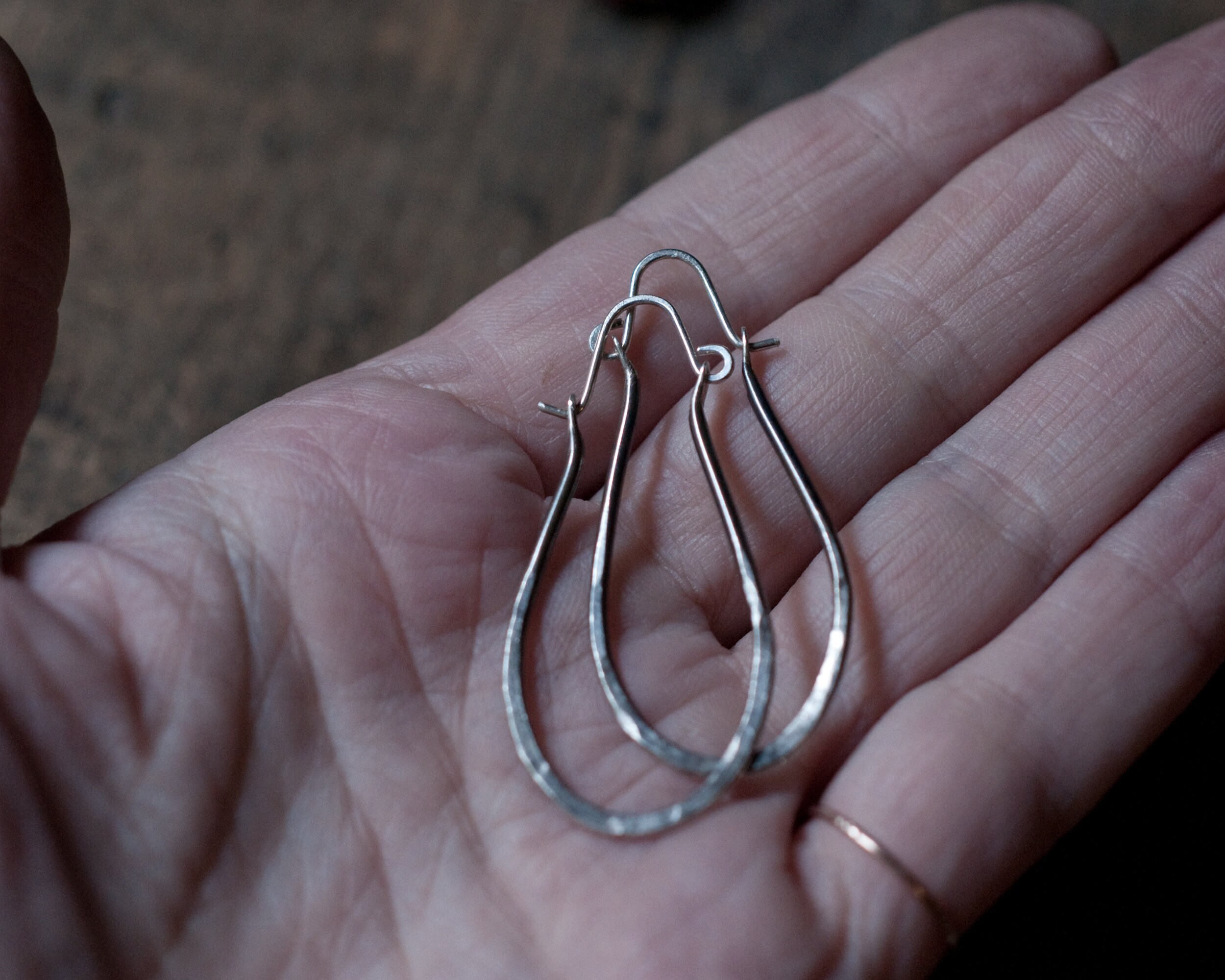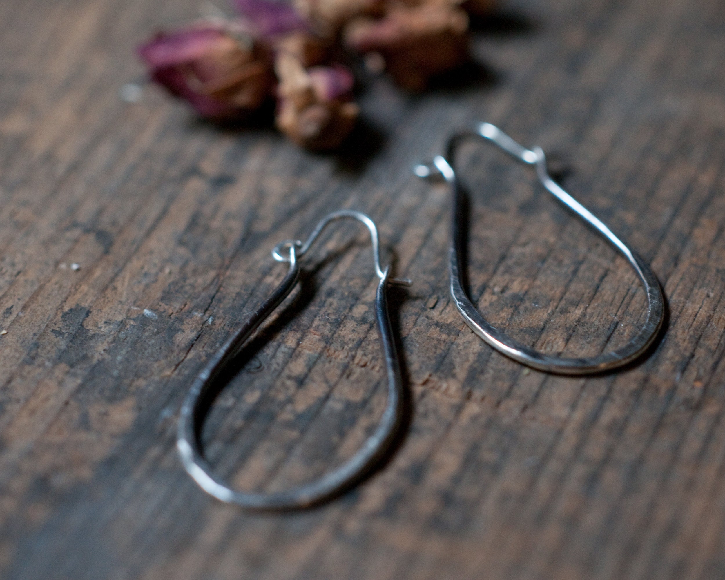 I LOVE these earrings!! Wearing them constantly, I can't get enough! The droopy shape is so gorgeous, and I love the subtle ombre effect of hammered, oxidized metal. Even the clasps are beautiful! They arrived along with my ring well before the expected delivery date, which was such an unexpected treat! I'll definitely be returning again in the future! Thank you! ❤️