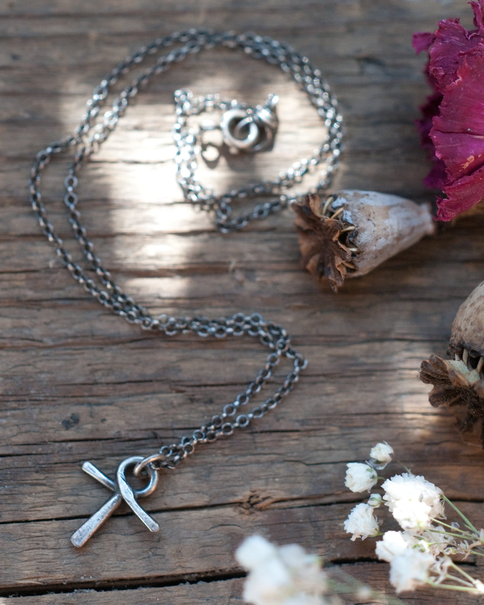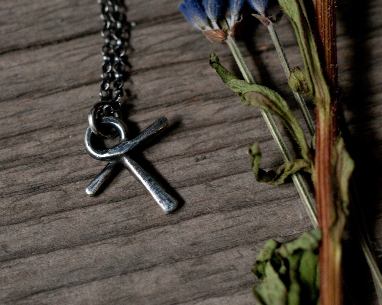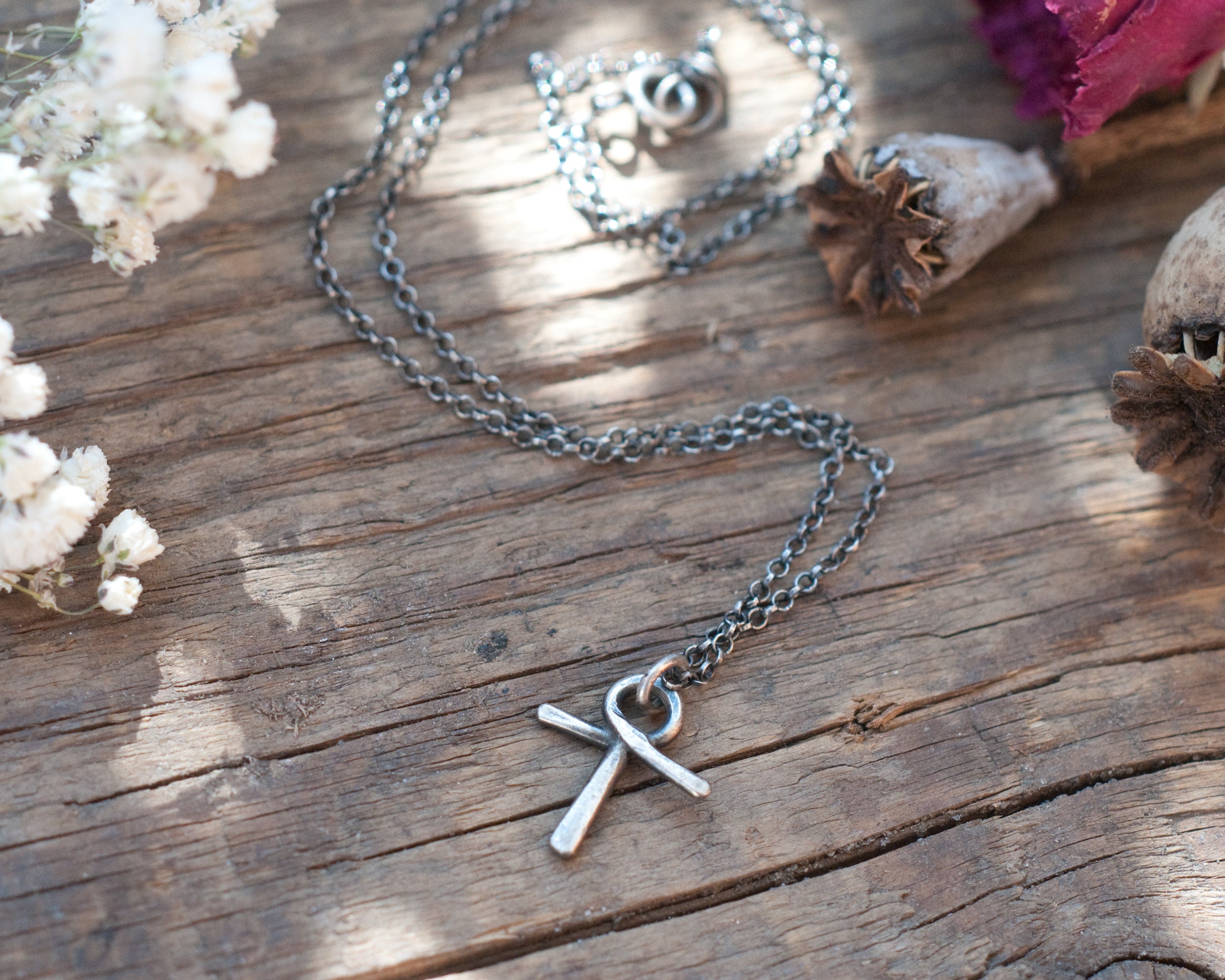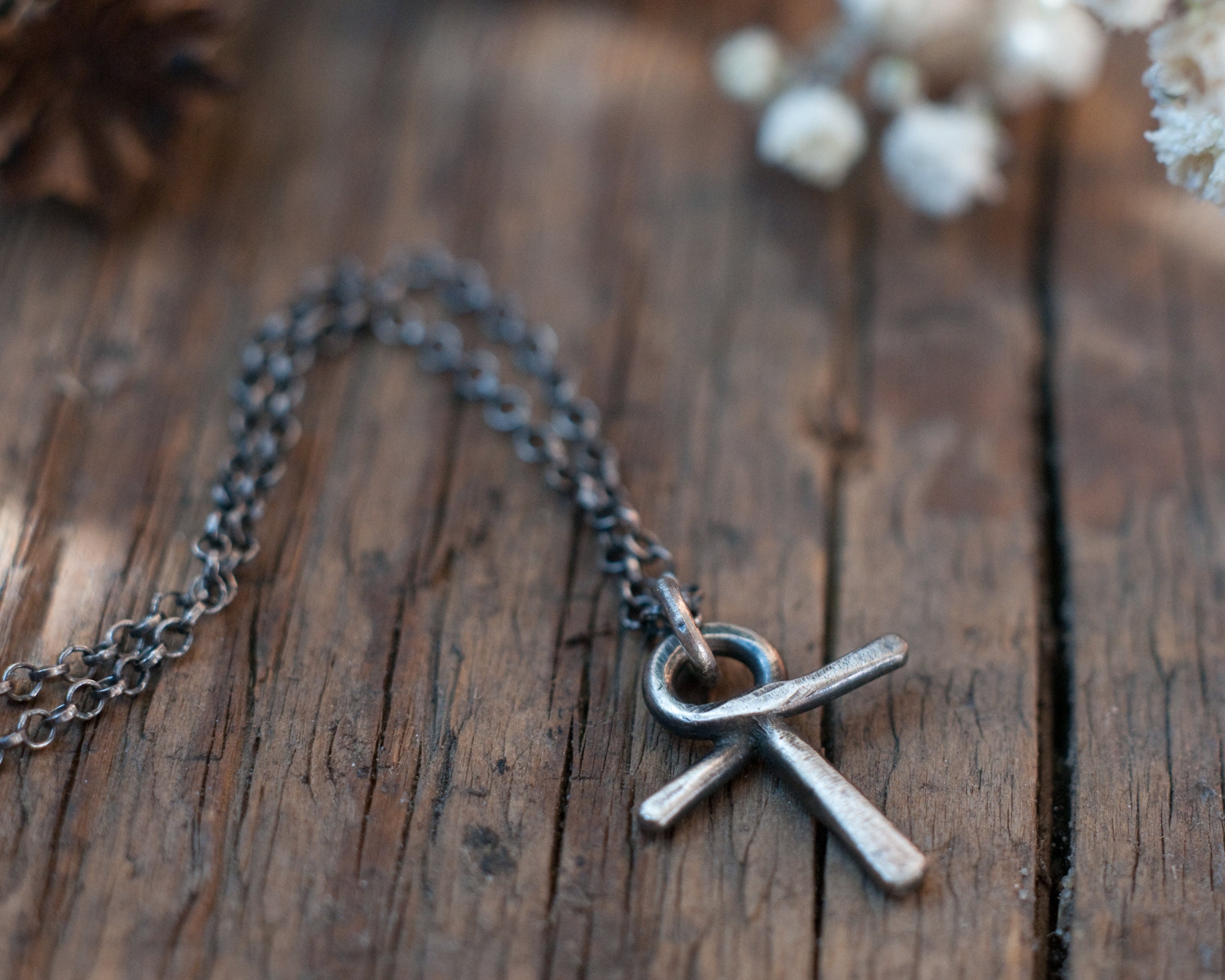 Approximately 2cm in length with an 18" oxidised sterling silver chain.